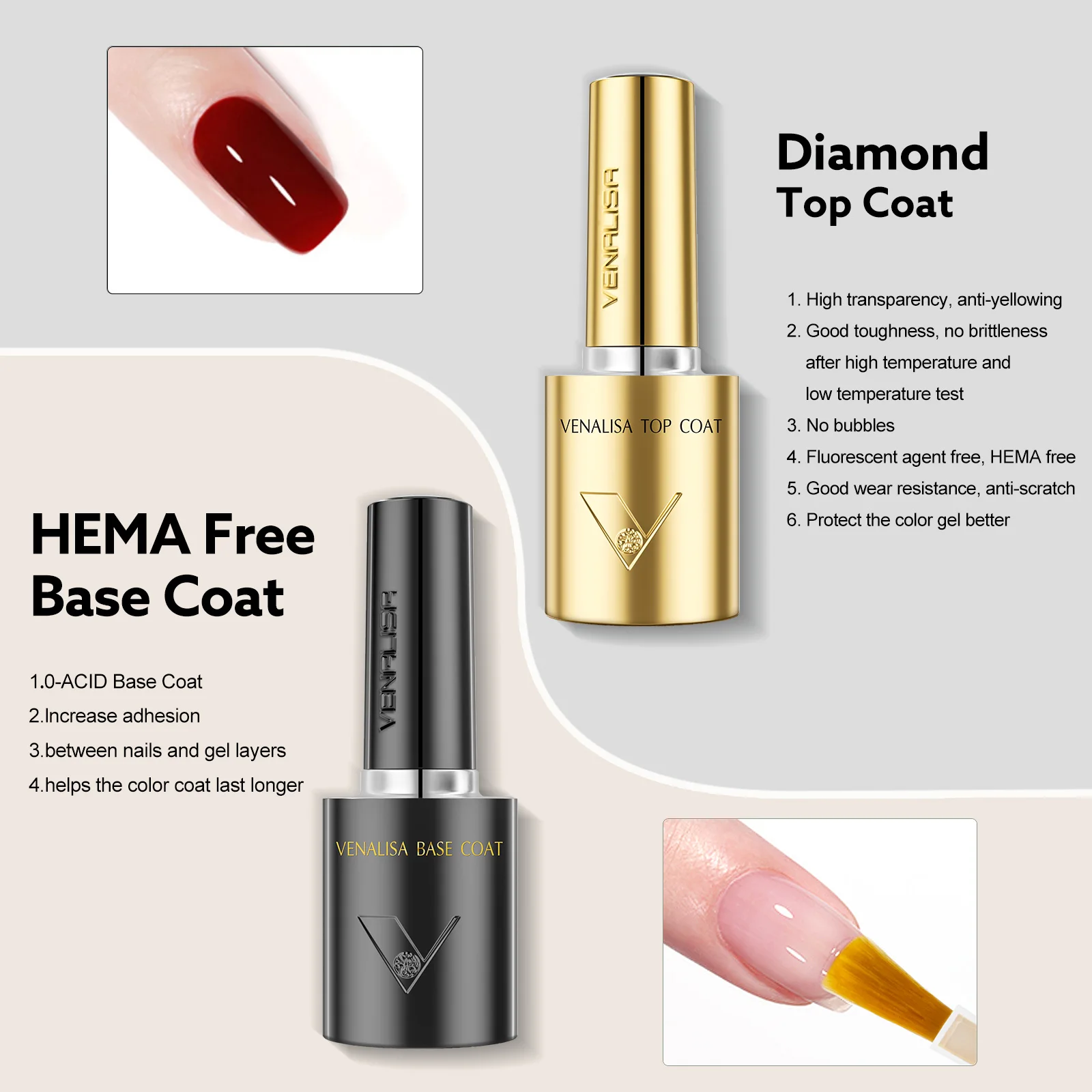 10ml Venalisa Ultra Glossy Diamond Long Wear Top Coat Base Coat Soak Off UV LED Semi Permanent Gel Hema Free TPO Free Color Gel