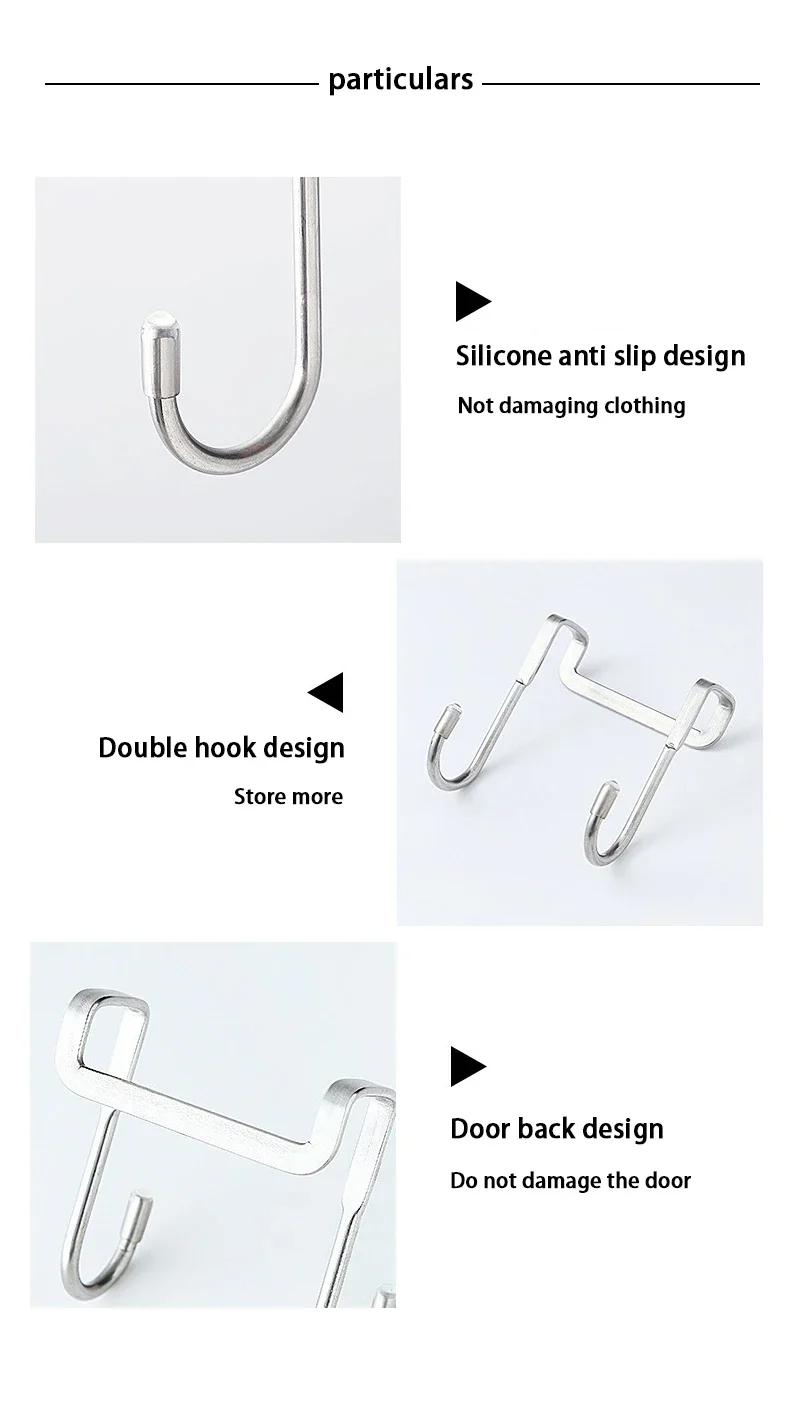201 Stainless Steel Hook Free Punching Double S-Shape Hook Kitchen Bathroom Cabinet Door Back Type Coat Towel Storage Hanger