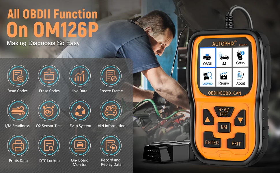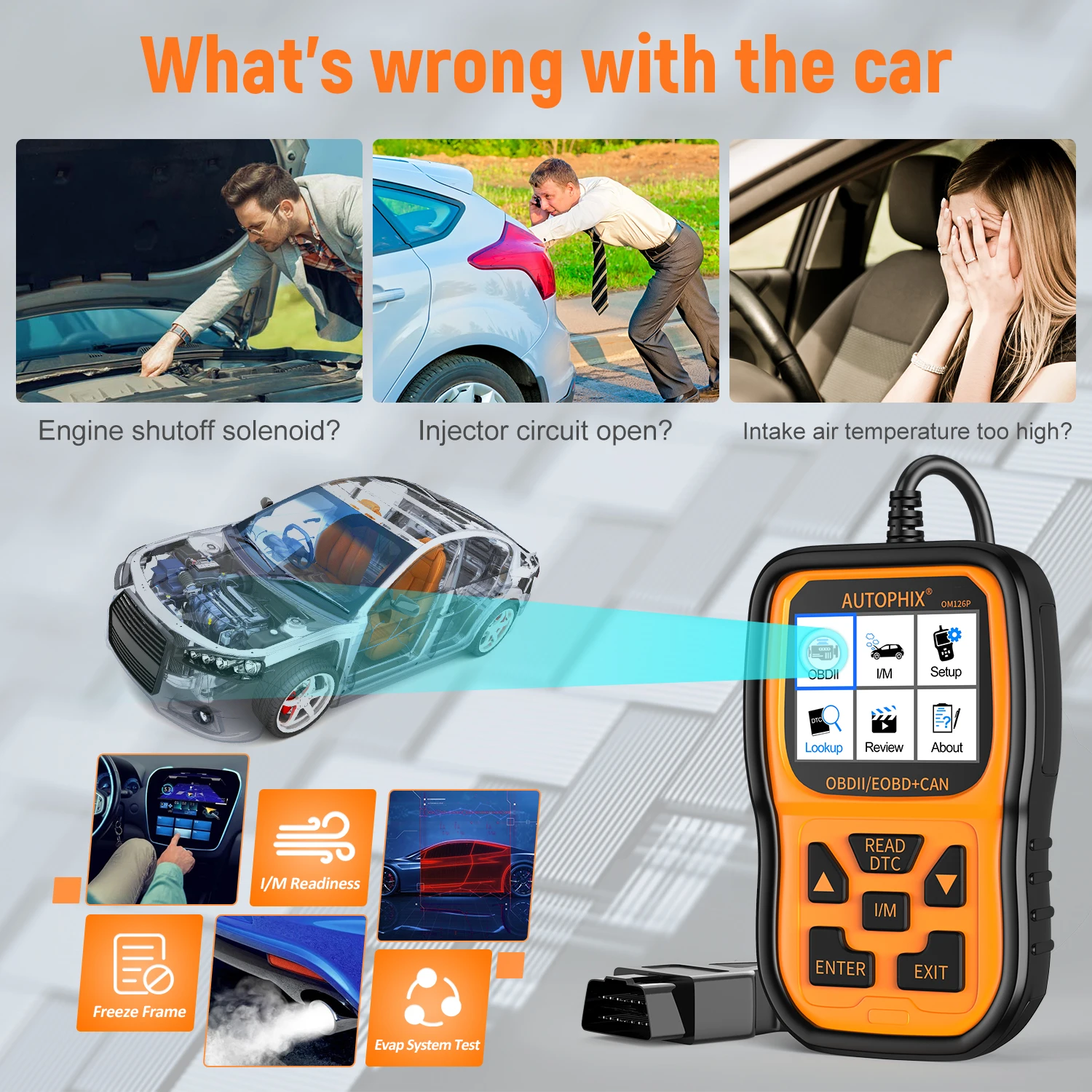 Save time and money on car repairs with the Autophix OM126P OBD2 Scanner! This professional-grade diagnostic tool accurately identifies engine problems when your check engine light turns on, helping you understand what's wrong before taking your car to the mechanic.