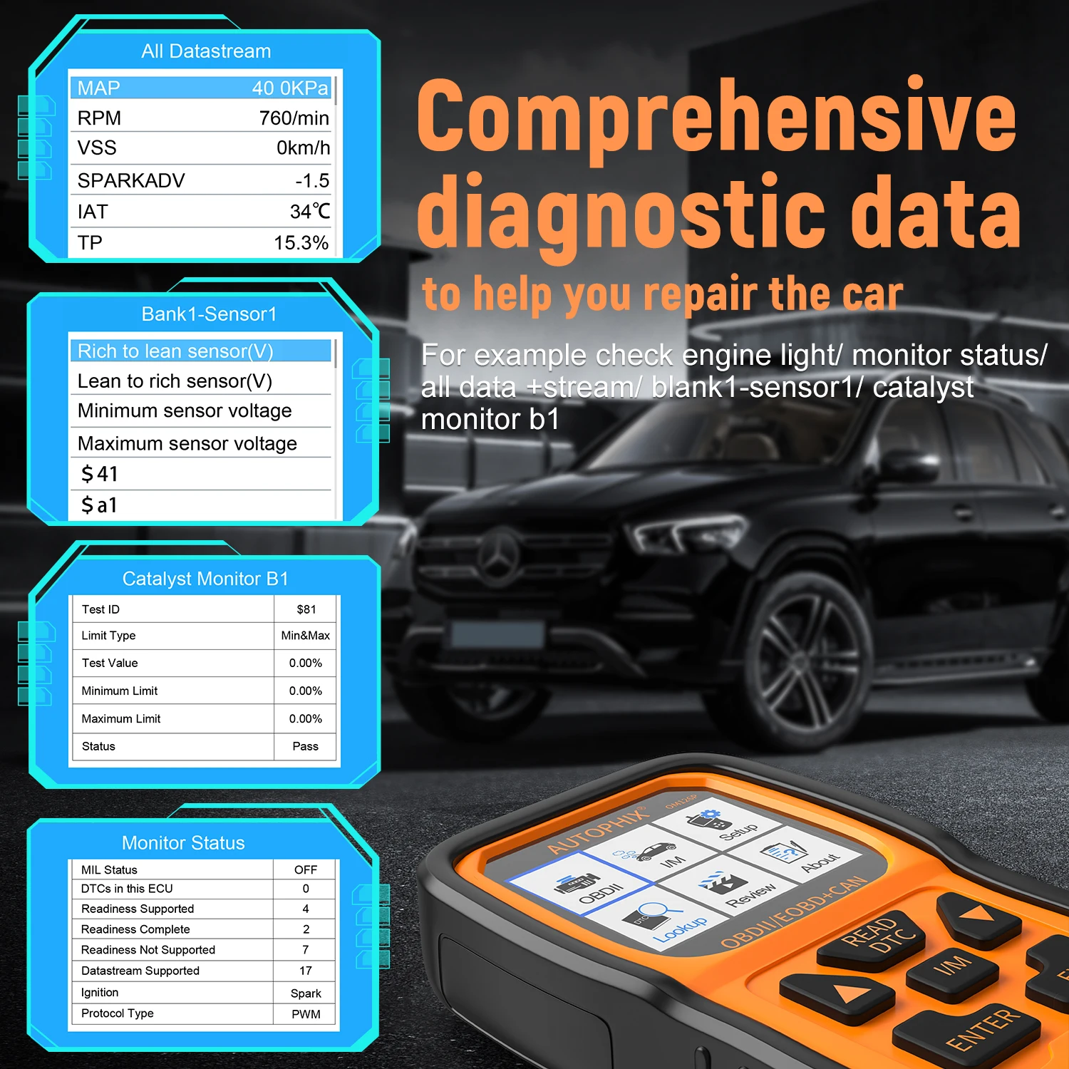 - O2 Sensor & EVAP Test: Monitor air/fuel mixture and identify fuel efficiency issues