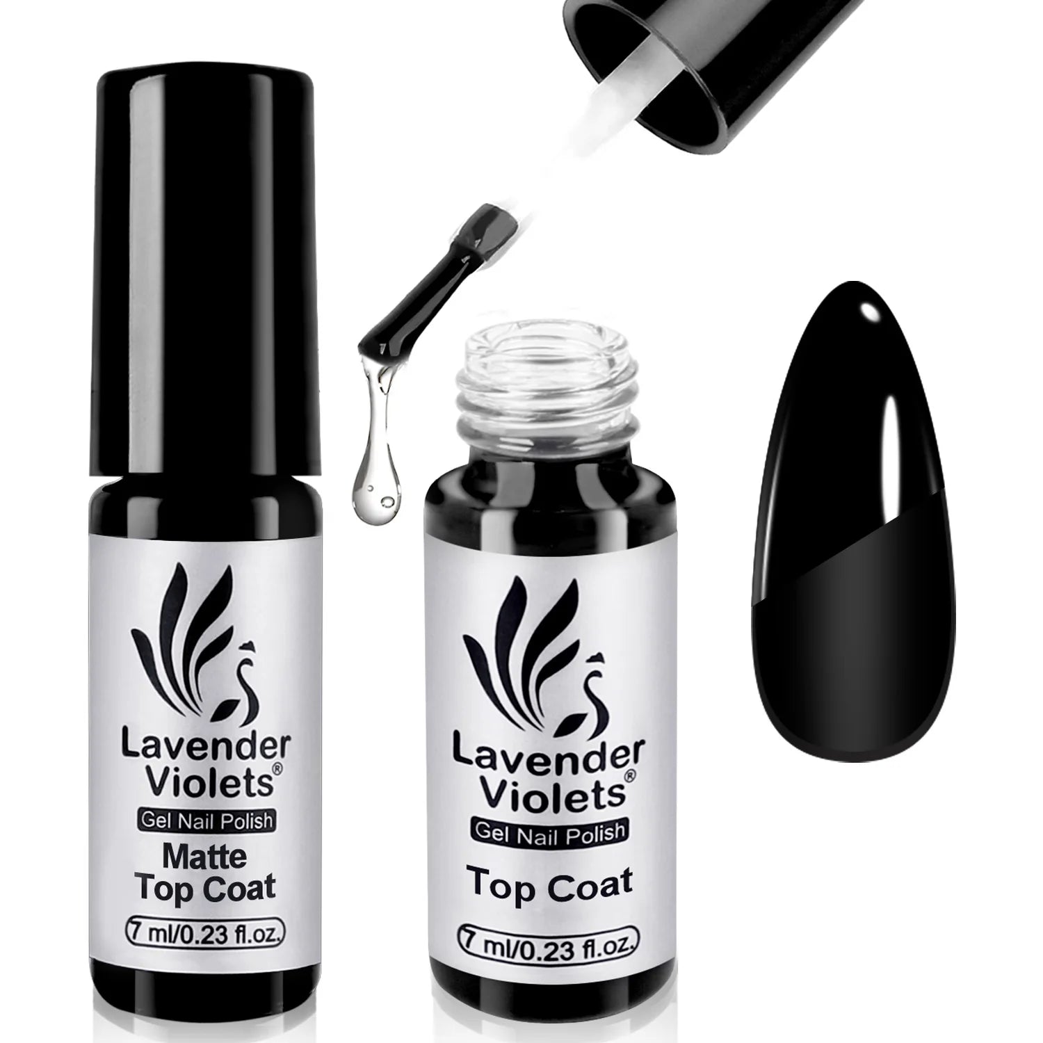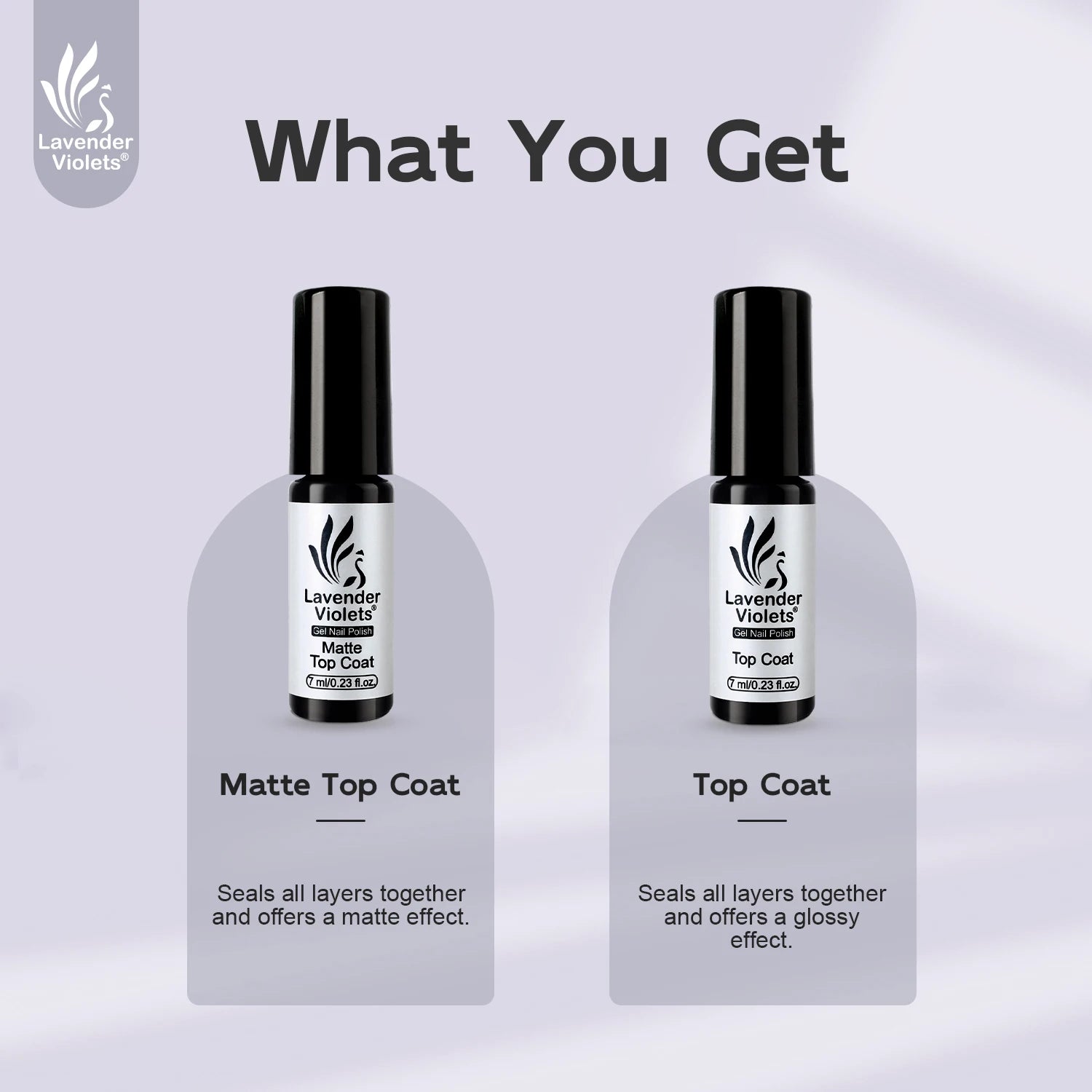 2pcs 7ml No Wipe Glossy and Matte Top Coat, Long Lasting Soak Off Nail Gel Varnish for Home Salon Manicure Beginner Use
