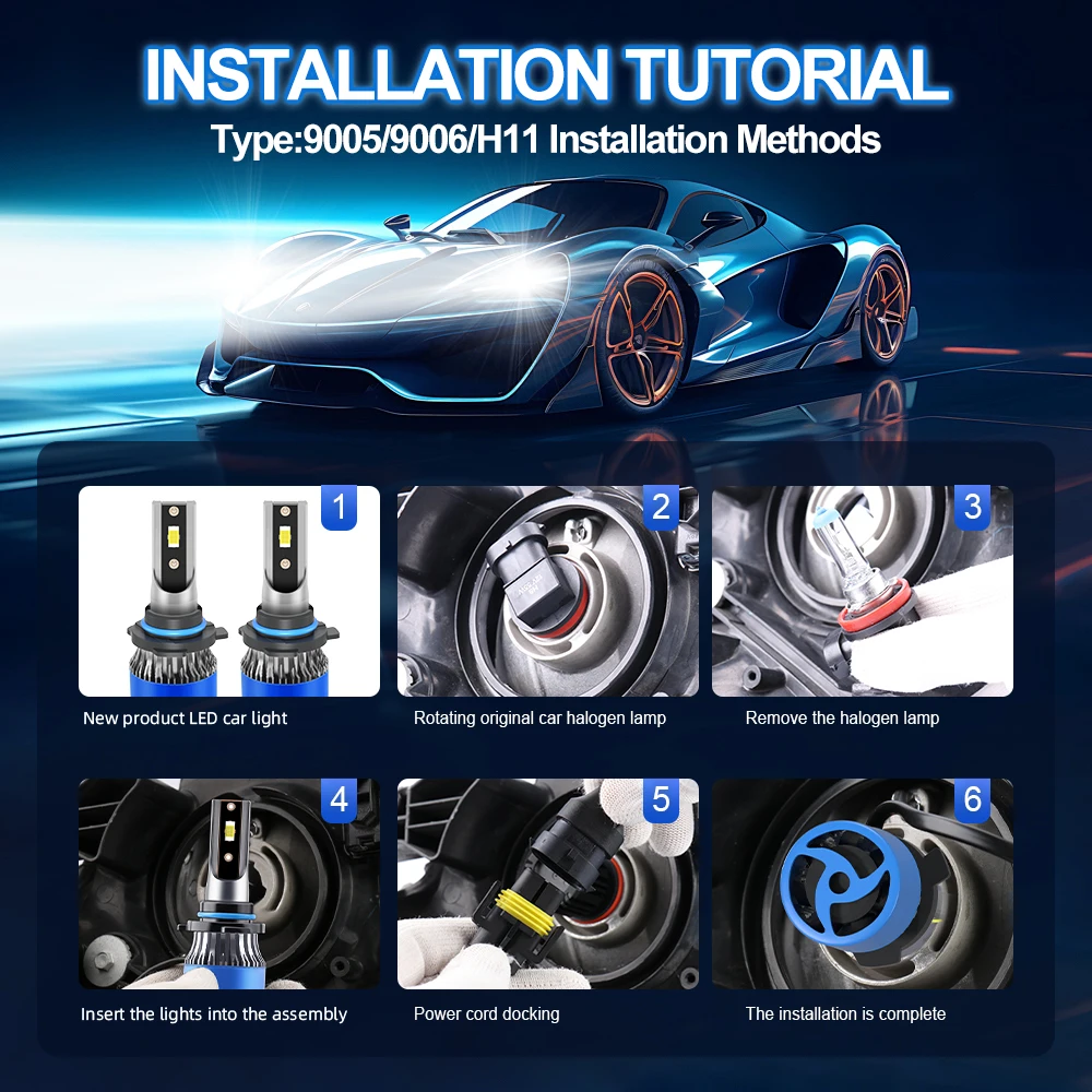 LED Headlight Bulbs H7 H4 H11 H8 H9 - 6000K Bright White Car Headlamp 12V (2pcs)