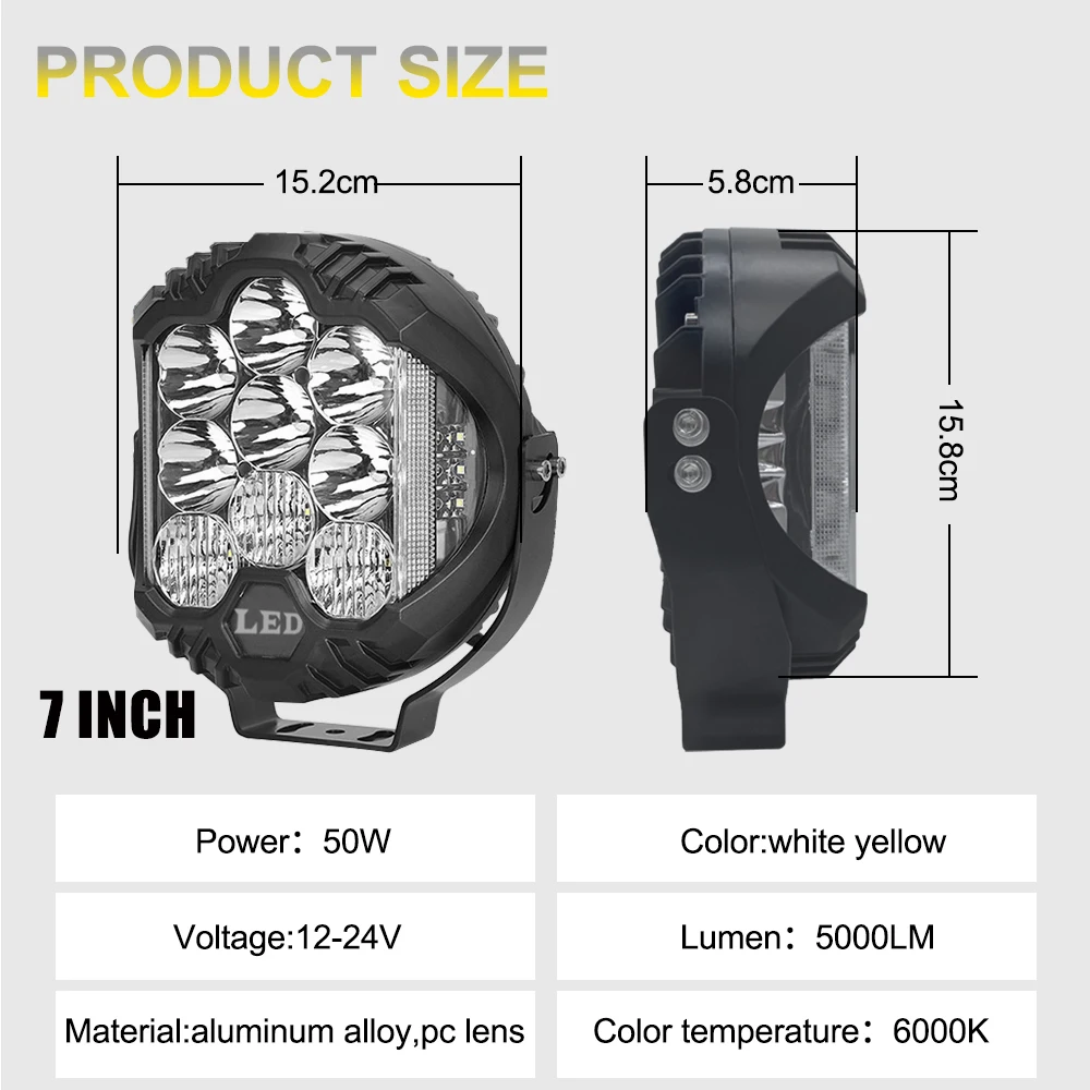 3'' 5'' 7'' Automobile LED Sport Work Lamps for Lada Offroad 4X4 vehicle Auxiliary Lights led 7 INCH Combo Driving Lamp Headlamp
