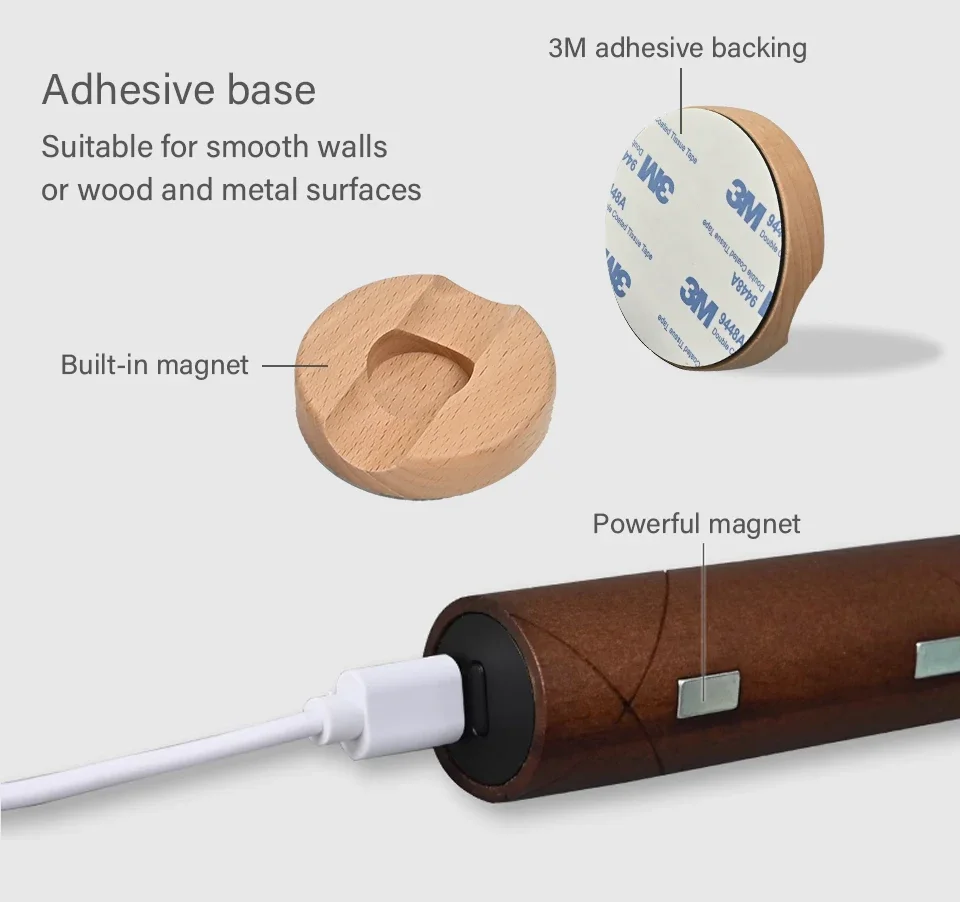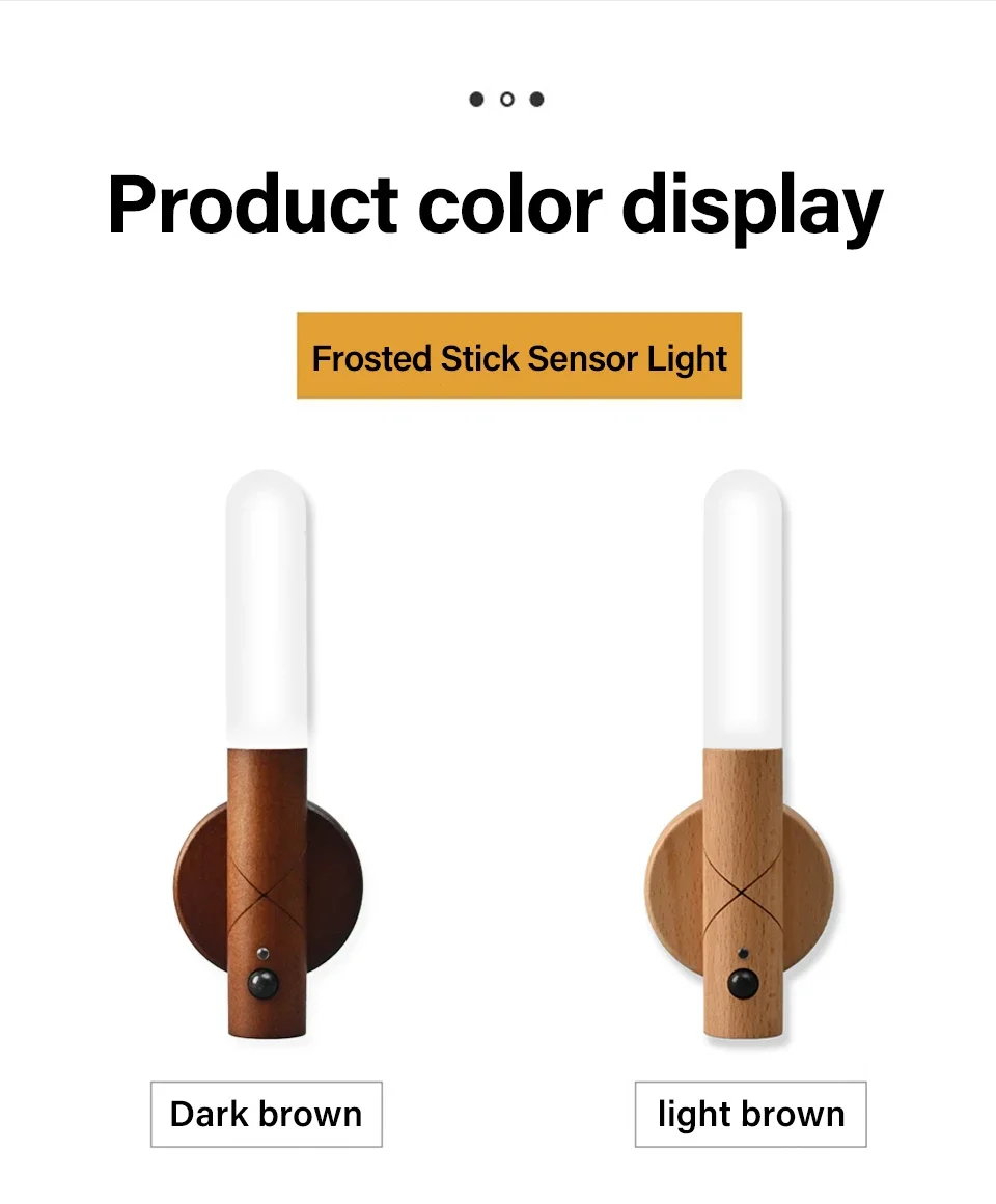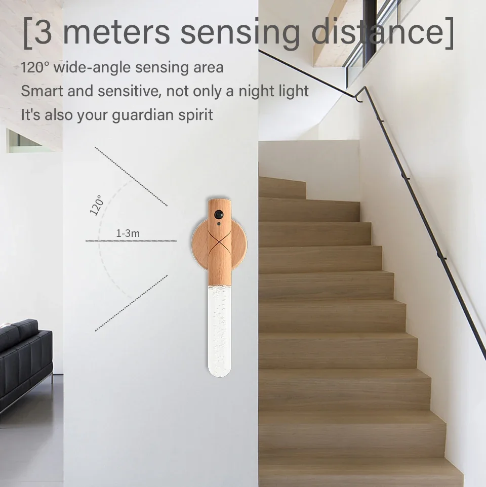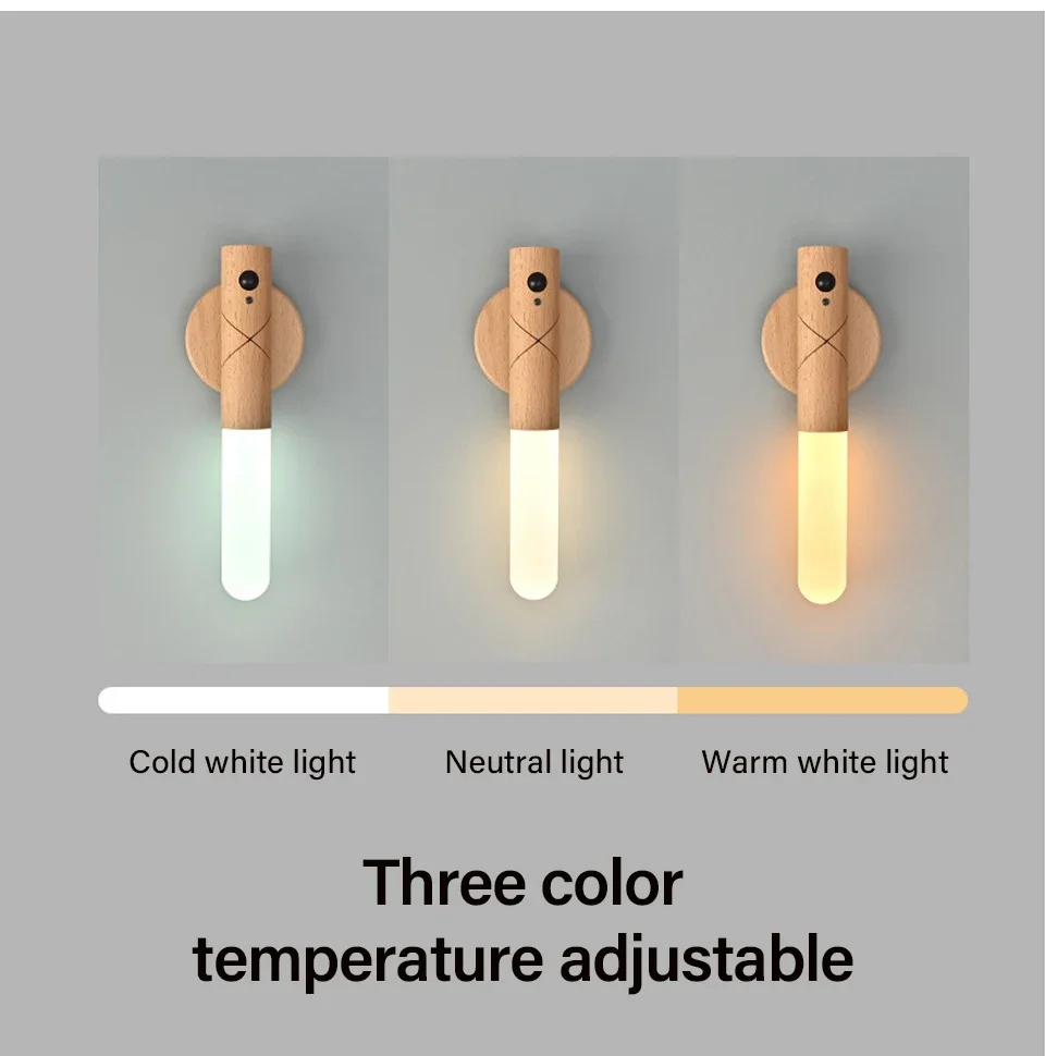 3 in1 LED Wooden Night Light Motion Sensor Wall lamp Rechargeable Cabinet Light Room Decor Wall Mount Automatic Induction Light