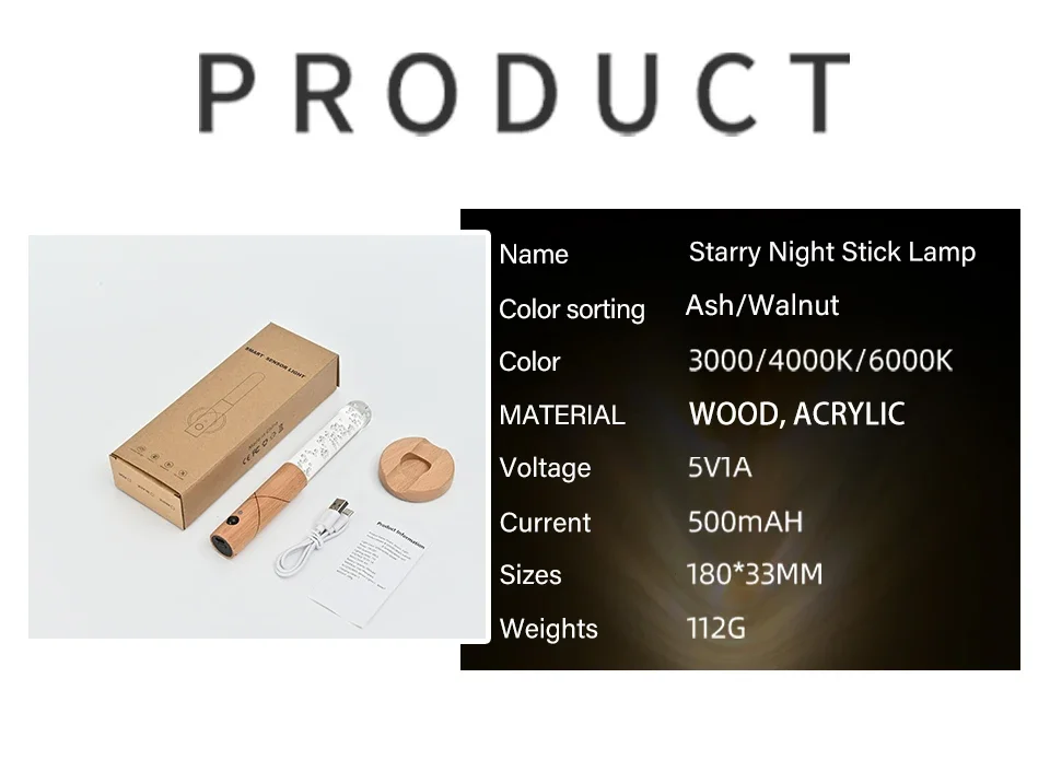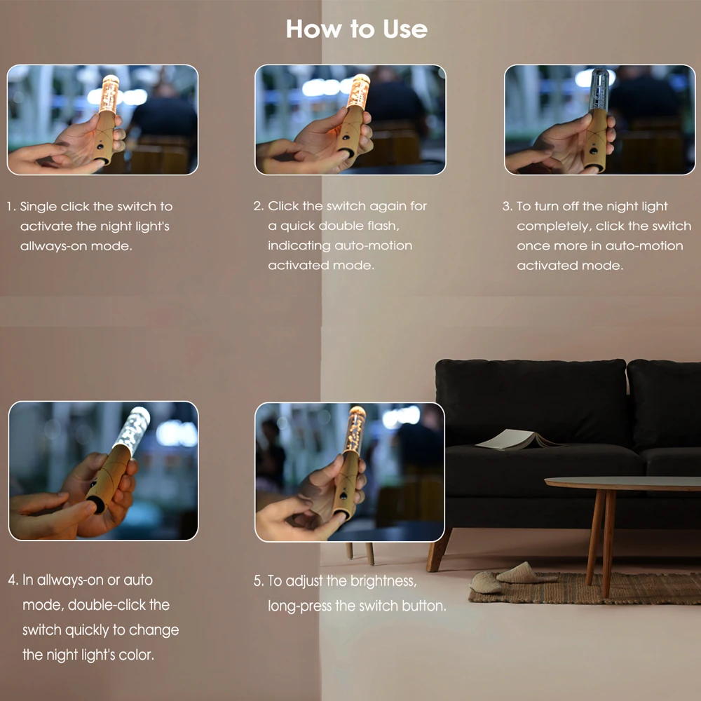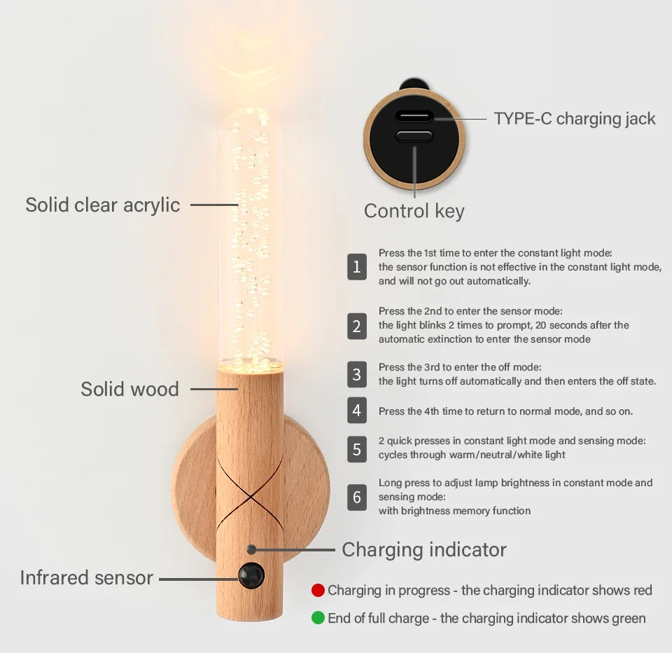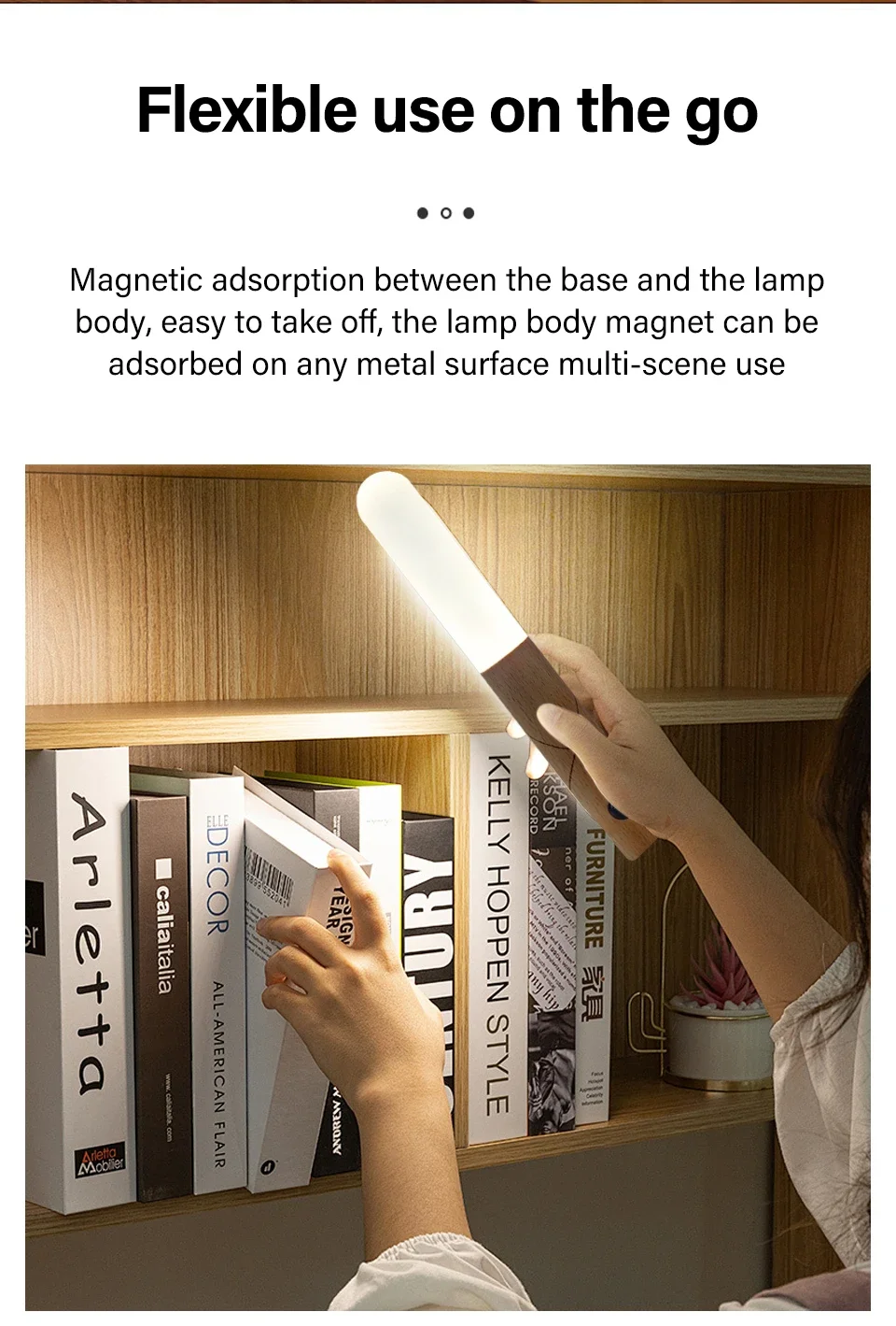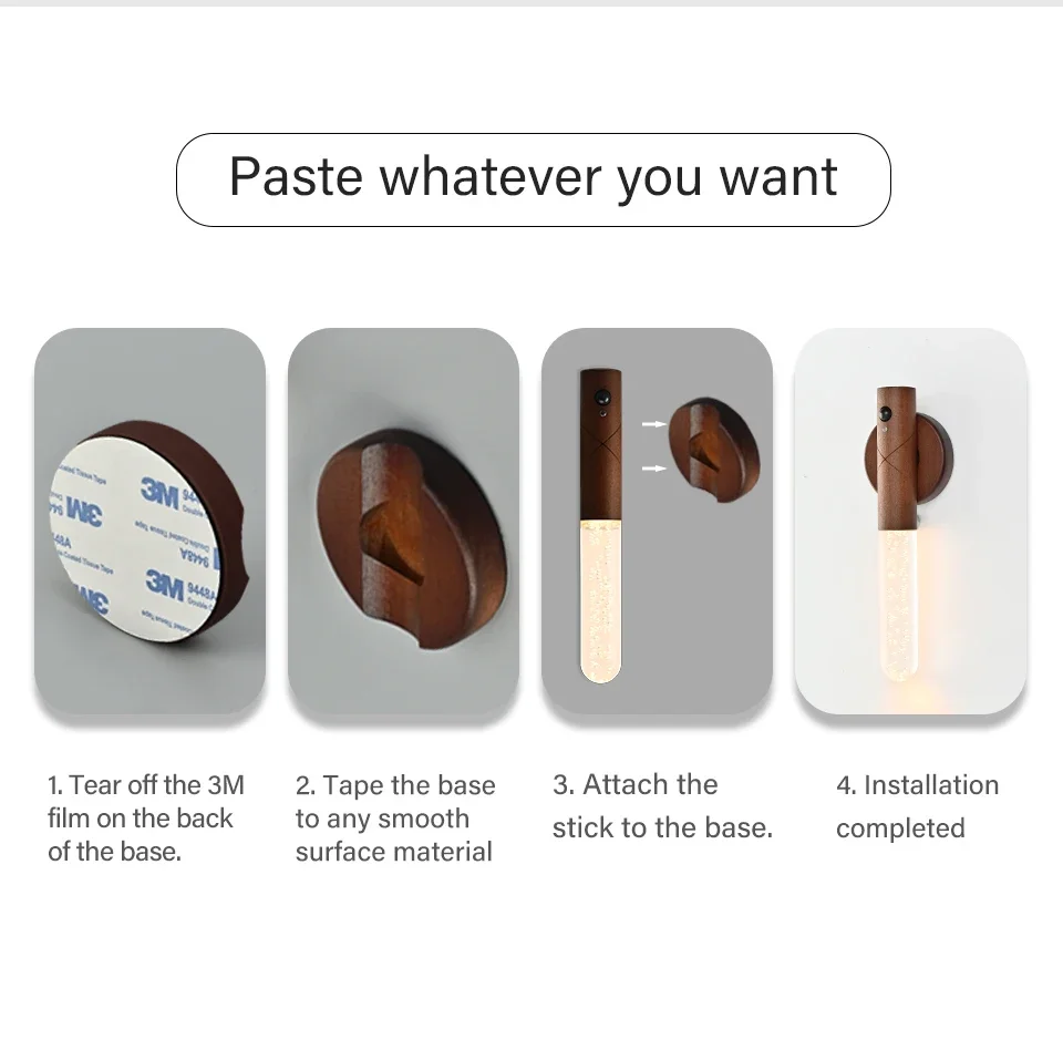 3 in1 LED Wooden Night Light Motion Sensor Wall lamp Rechargeable Cabinet Light Room Decor Wall Mount Automatic Induction Light