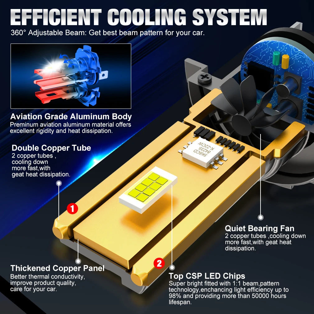 30000LM H7 LED Bulb Headlight Double Copper Tube 360W CSP for Car Headlamp Auto Diode Lamps Canbus H7 Led Turbo 6000K 12V