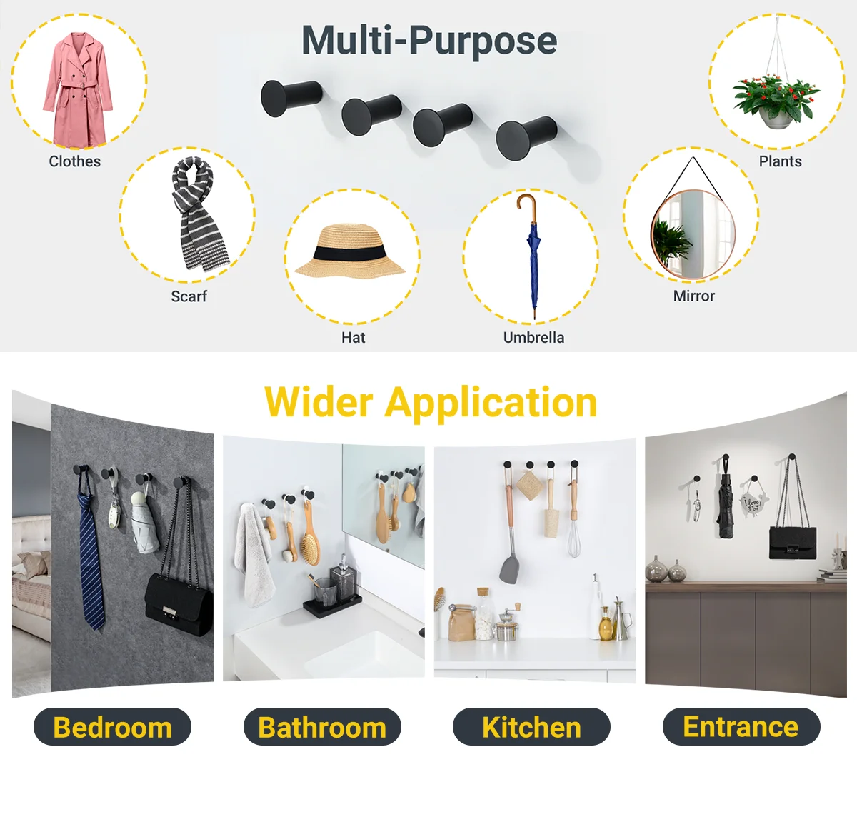 -Strong & Sturdy- Hold up to 33lbs/15Kg each hook.