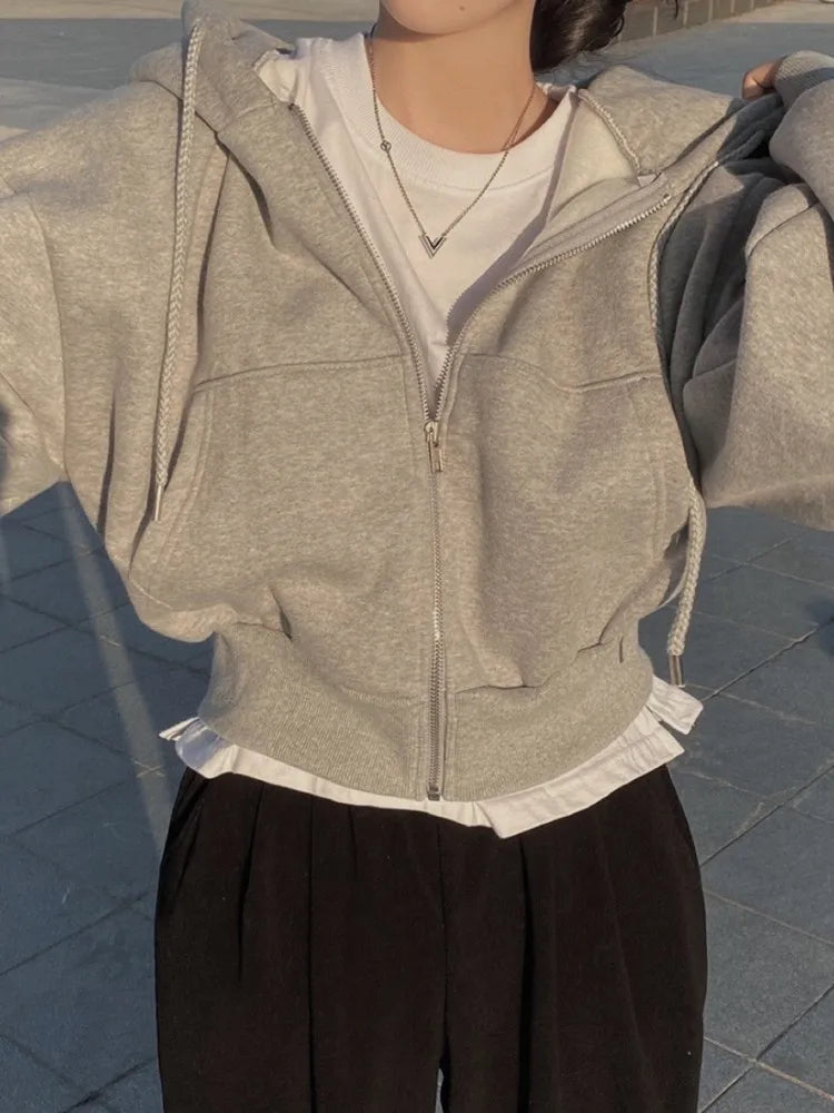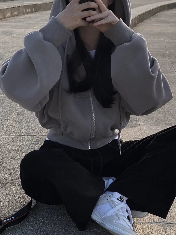 6colors 2023 Korean Women Autumn Winter Hoodie Coats Short Warm Zipper Jacket Casual Female Coat Tops womens