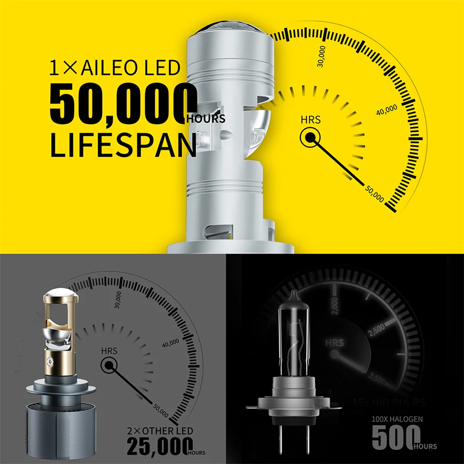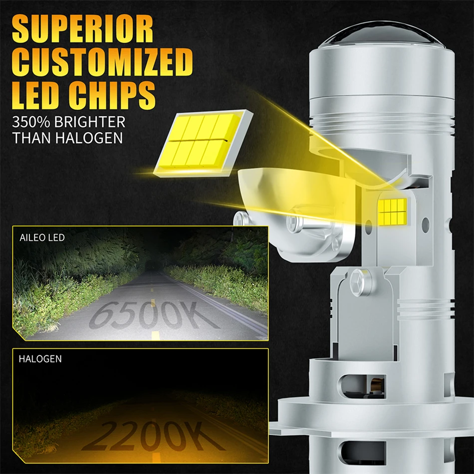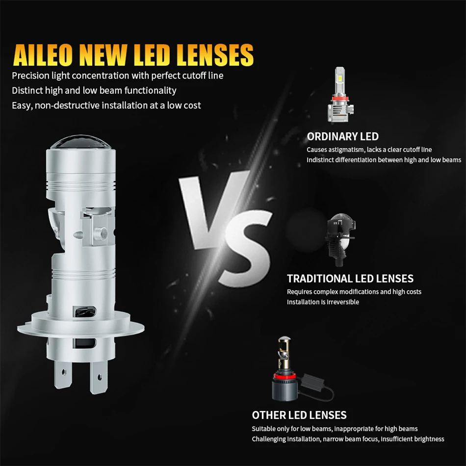 Upgrade your vehicle lighting with AILEO's premium H7 LED headlight bulbs featuring integrated mini projector lens. Delivers 16000LM brightness with perfect beam pattern, 350% brighter than halogen bulbs. CANBUS error-free for 99% vehicles.