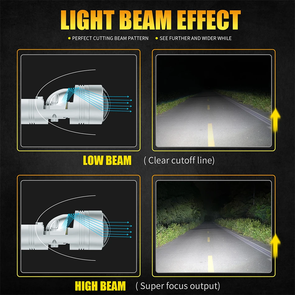 - Unique Optical Lens Design: Mini lens and reflected cup integrated design, perfect high/low beam pattern. No glare to other drivers.