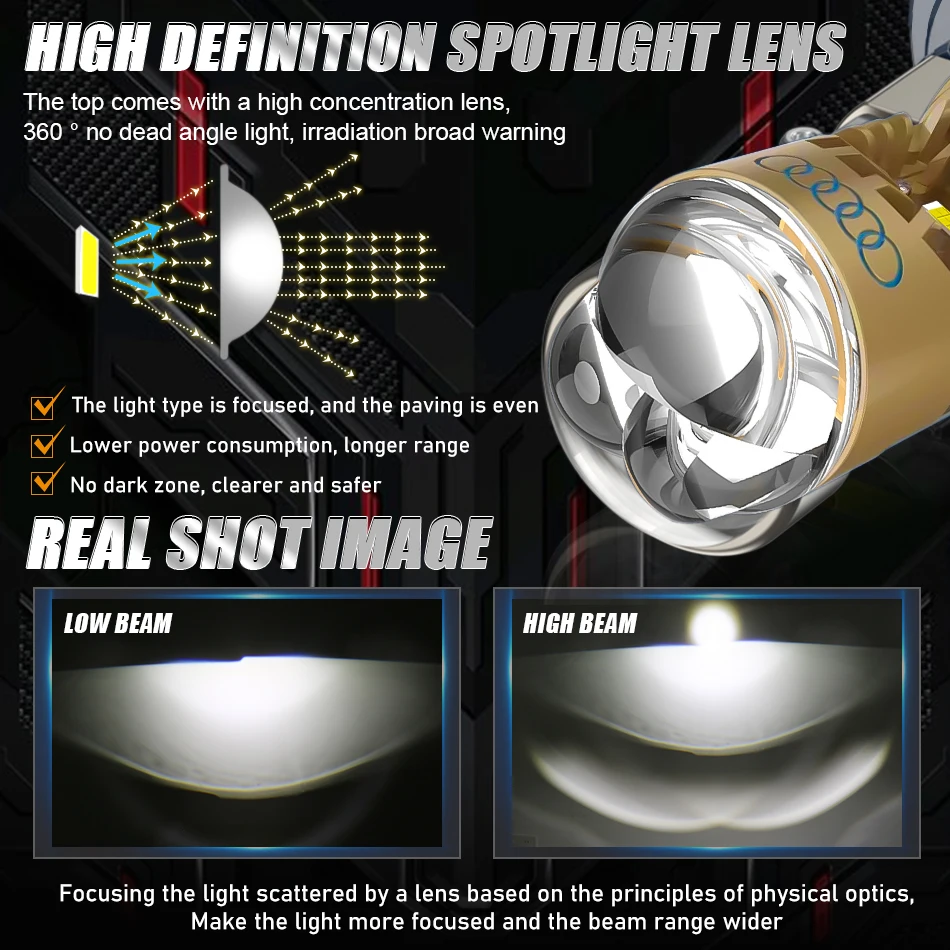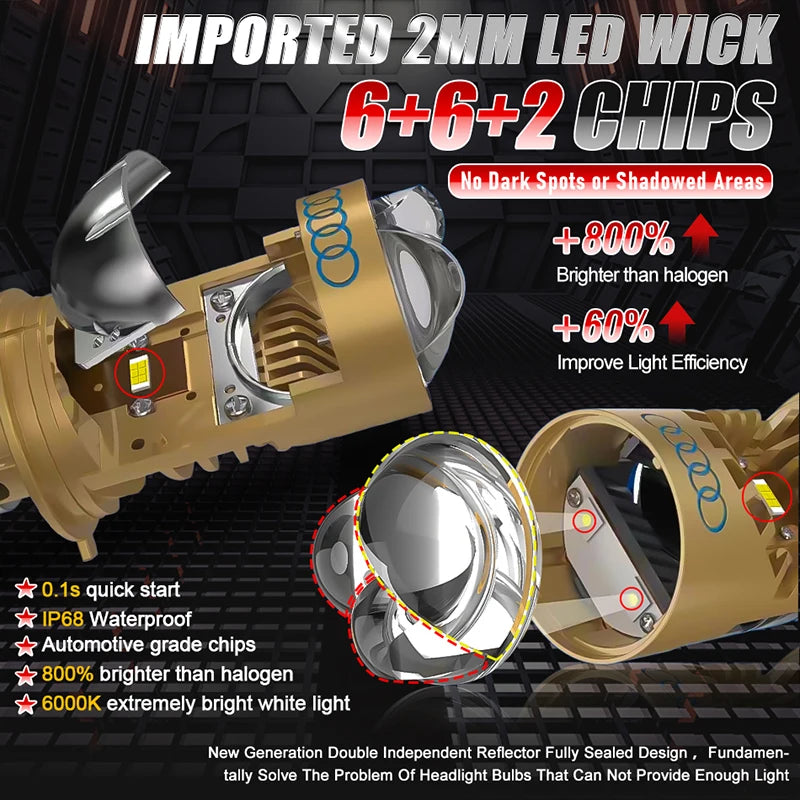 Feature 1: Led lights for car,Motorcycle H4 Bi LED Lens