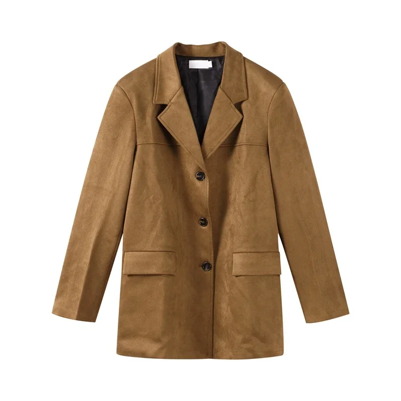 Elevate your spring wardrobe with this stylish boyfriend brown coat! Featuring a classic turndown collar, long sleeves, and a loose comfortable fit, this single-breasted jacket combines fashion with functionality. Perfect for the modern woman who values both style and comfort in 2025.