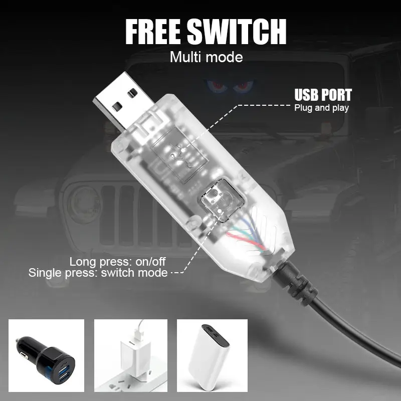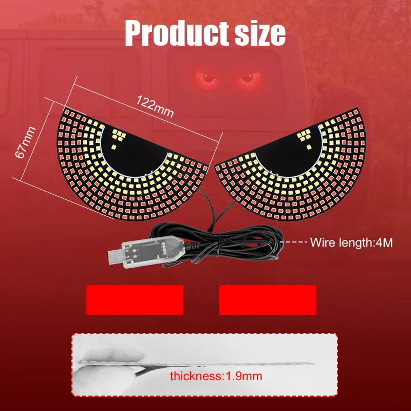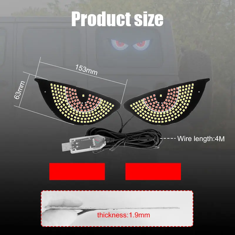 Car Back Window expression lights LED Strips Light Panel Car Windshield Display Devil's Eye Decorative Lamps USB Plug Lighting