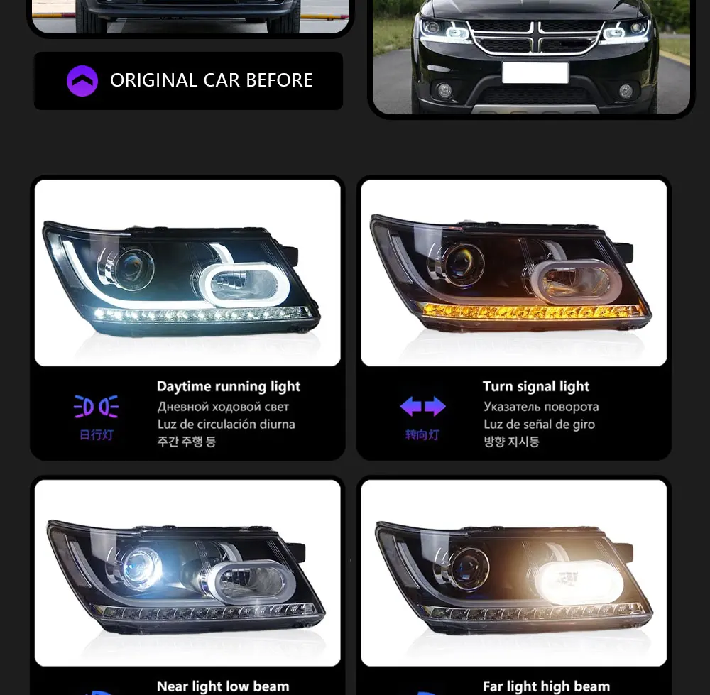 Car headlights For Dodge Journey Headlight 2009-2016 LED Projetor head Lamp Daytime Running Light Automotive Accessories