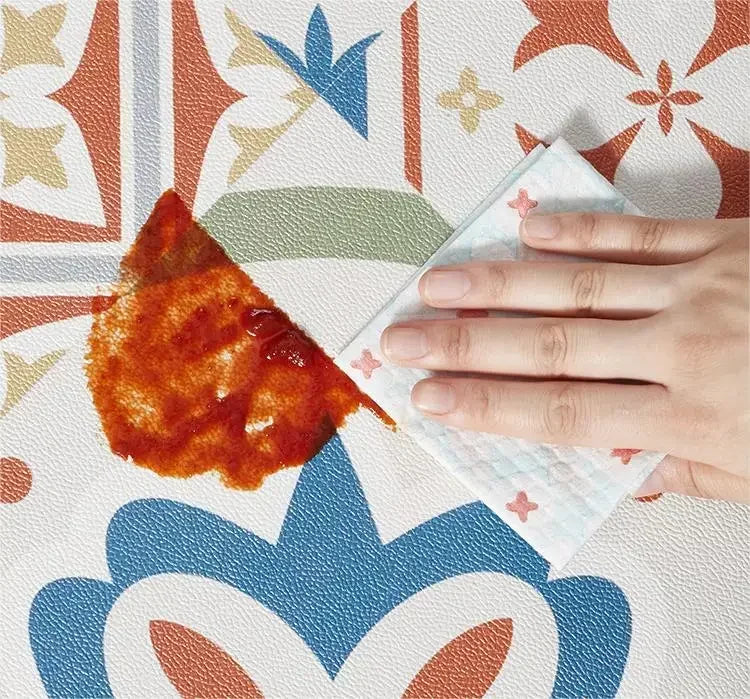 The floor mat you are looking at now is professionally used in the kitchen. Its fabric is leather PVC. Its main feature is waterproof, oil-proof and non-slip. At the same time, its soft and resilient fabric can also protect the tableware from being broken due to falling.