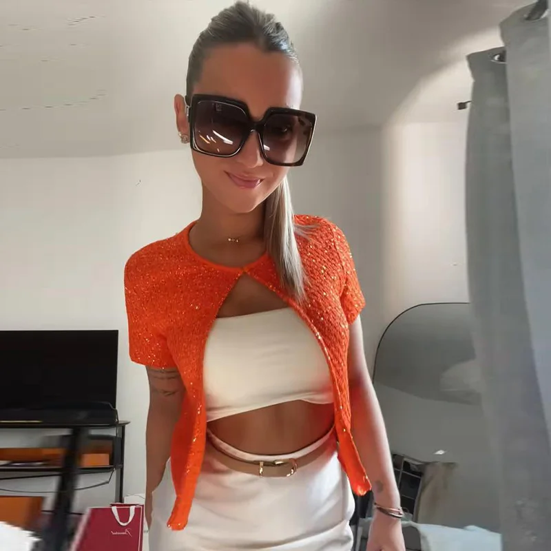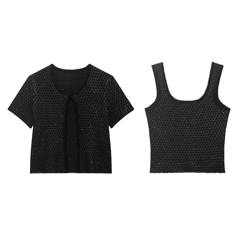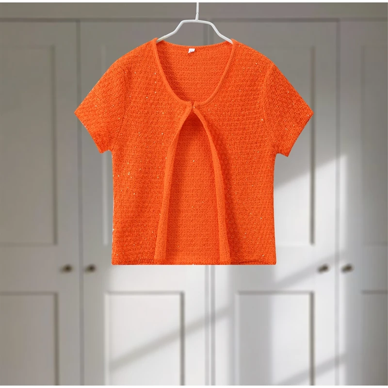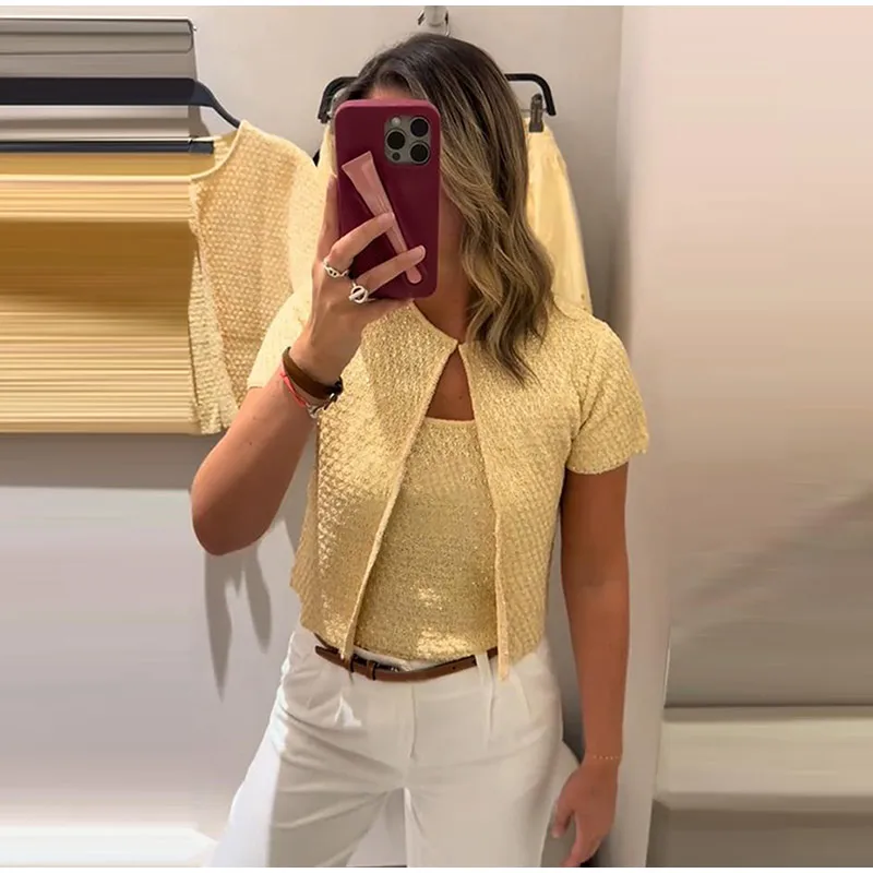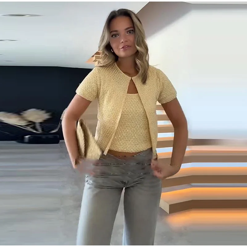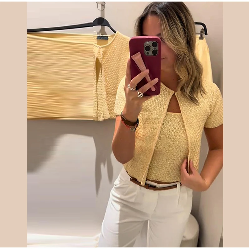Casual Knit Cardigan 2 Pieces Women Loose O Neck Short Sleeves One Button Sweater Female 2025 Summer Fashion Chic Solid Knitwear