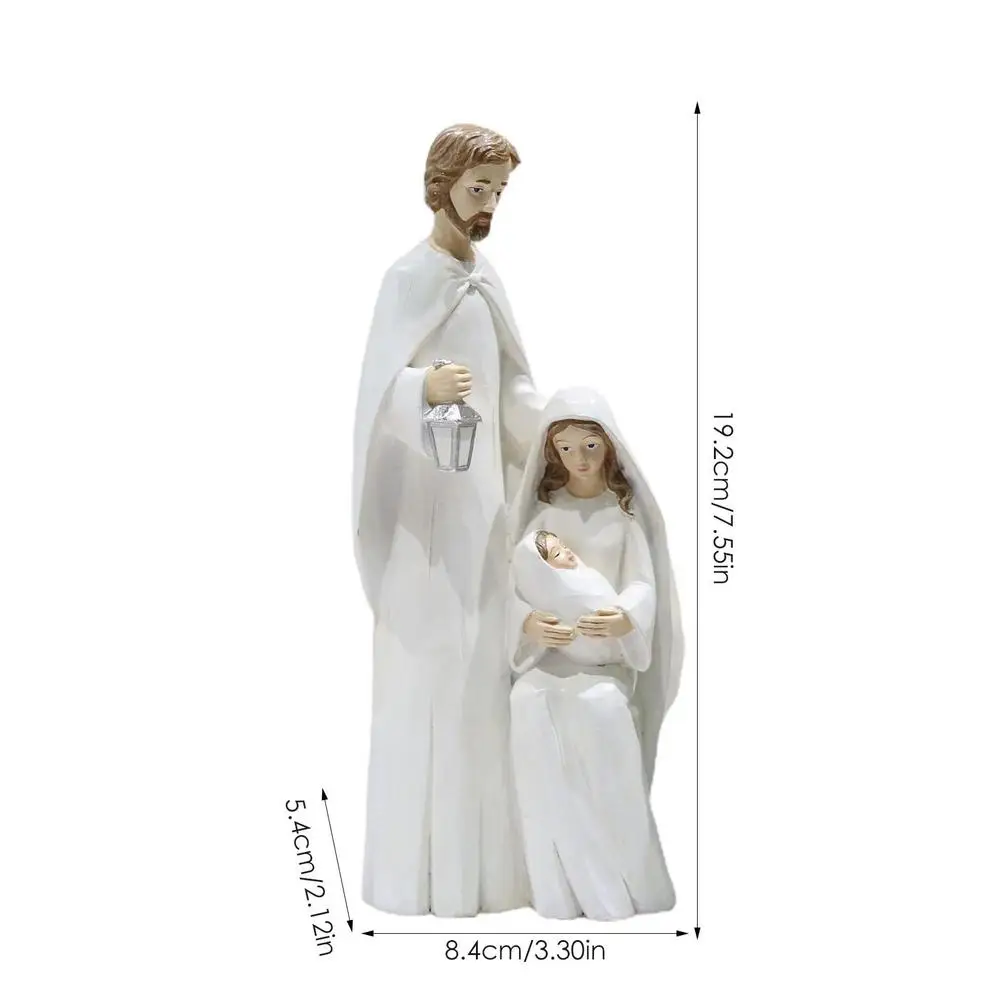 Christmas Holy Family Figurines - Wooden Nativity Scene Religious Art Statue Home Decor