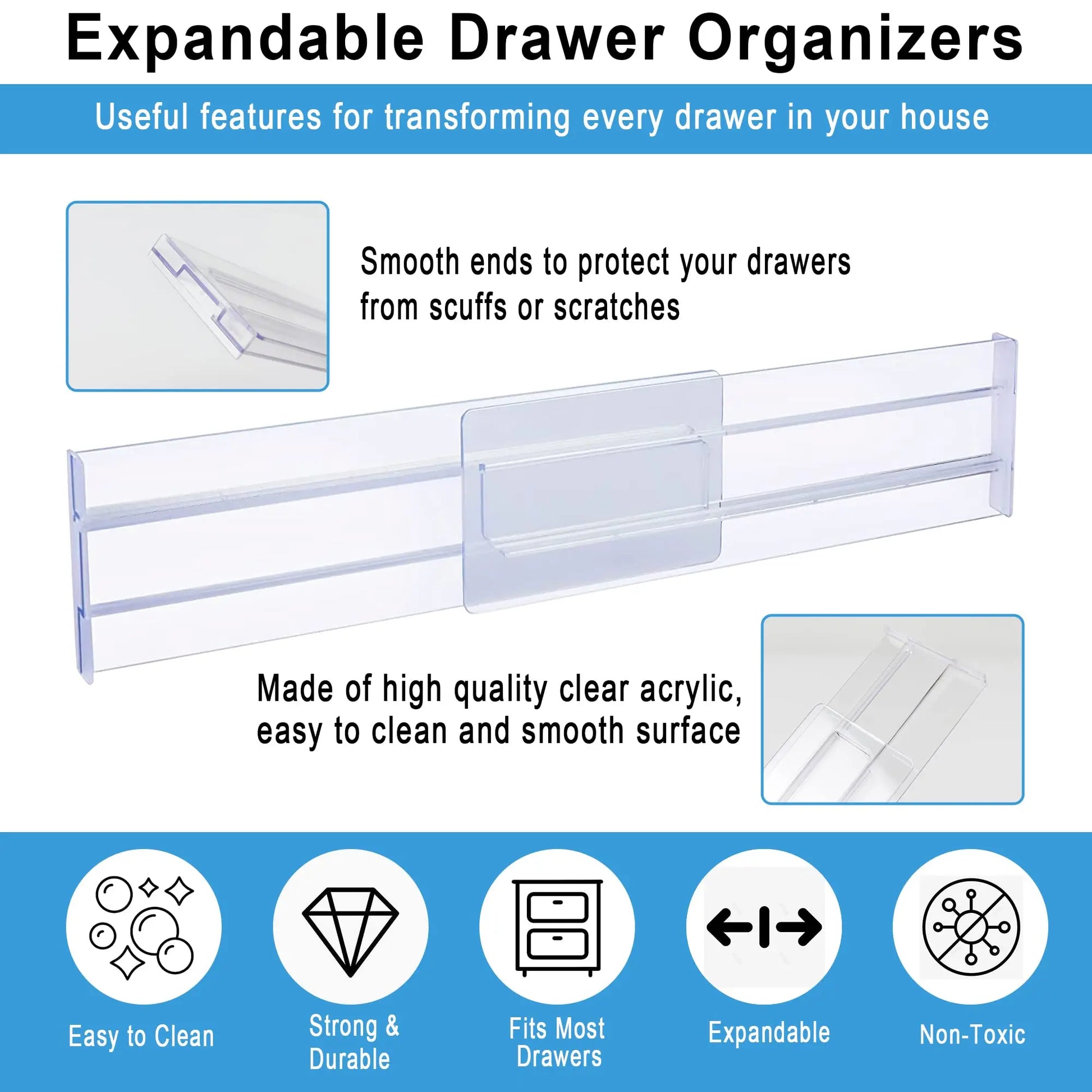 【Versatile Drawer Dividers】Our dividers can be used in a multitude of ways. From organizing drawers, clothes, kitchen utensils, office desk supplies, makeups, bathroom clutter, and more, our drawer dividers will create a customized space that suits your organizational needs perfectly.