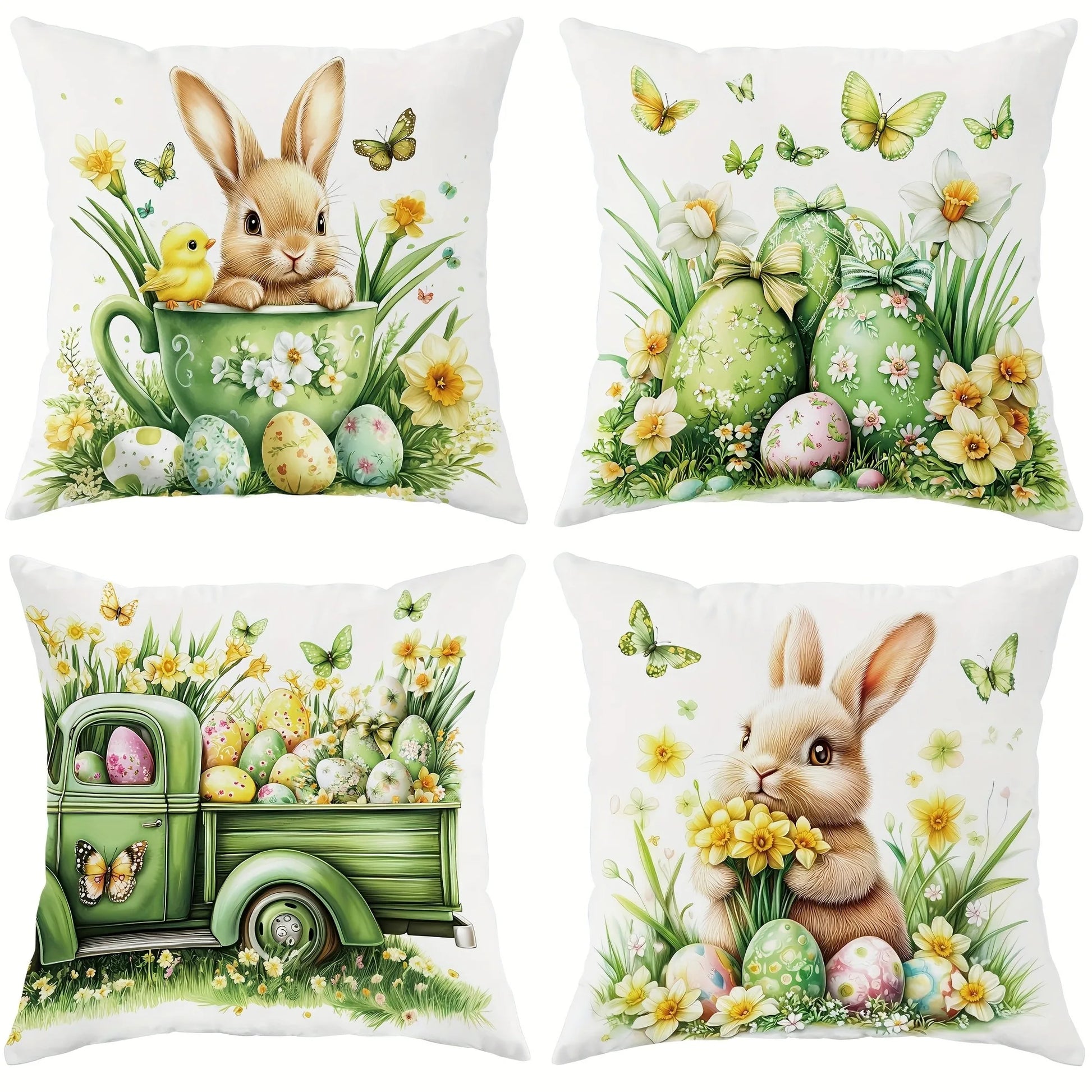 Easter Pattern Home Decor Pillow Cover Bedroom Living Room Sofa Decoration Polyester Cushion Cover with Zipper