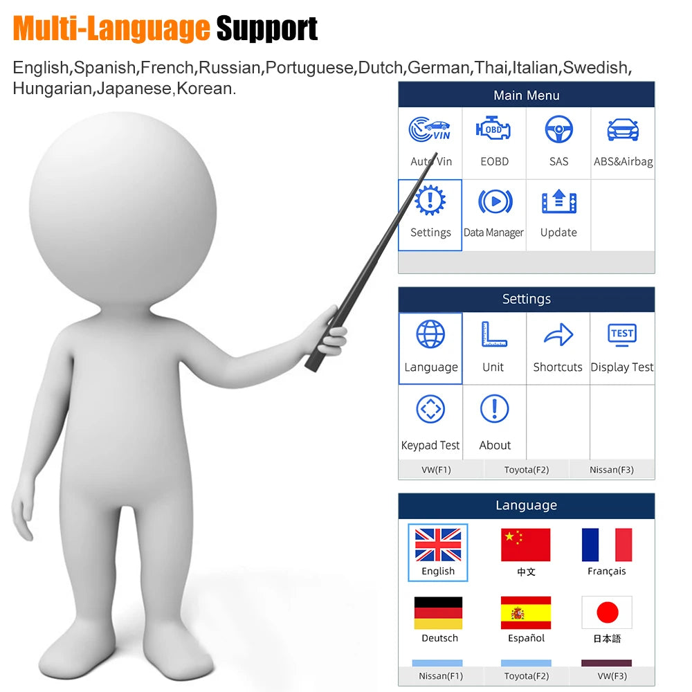 Foxwell NT630 Plus OBD2 Auto Diagnostic Scanner Tool Support Languages: