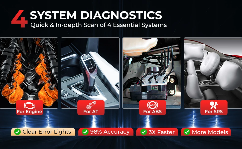 1. Four System Diagnosis: Engine + Transmission + ABS + SRS.