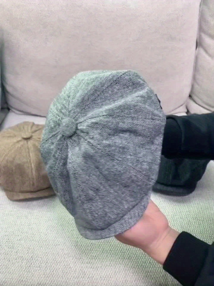 Men&Apos;S Retro Herringbone Flat Cap - Black Casual Beret with Vintage Style, Knitted Polyester, Perfect for Valentine&Apos;S Day, Everyday Headwear | Vintage Flat Cap | Knitted Texture