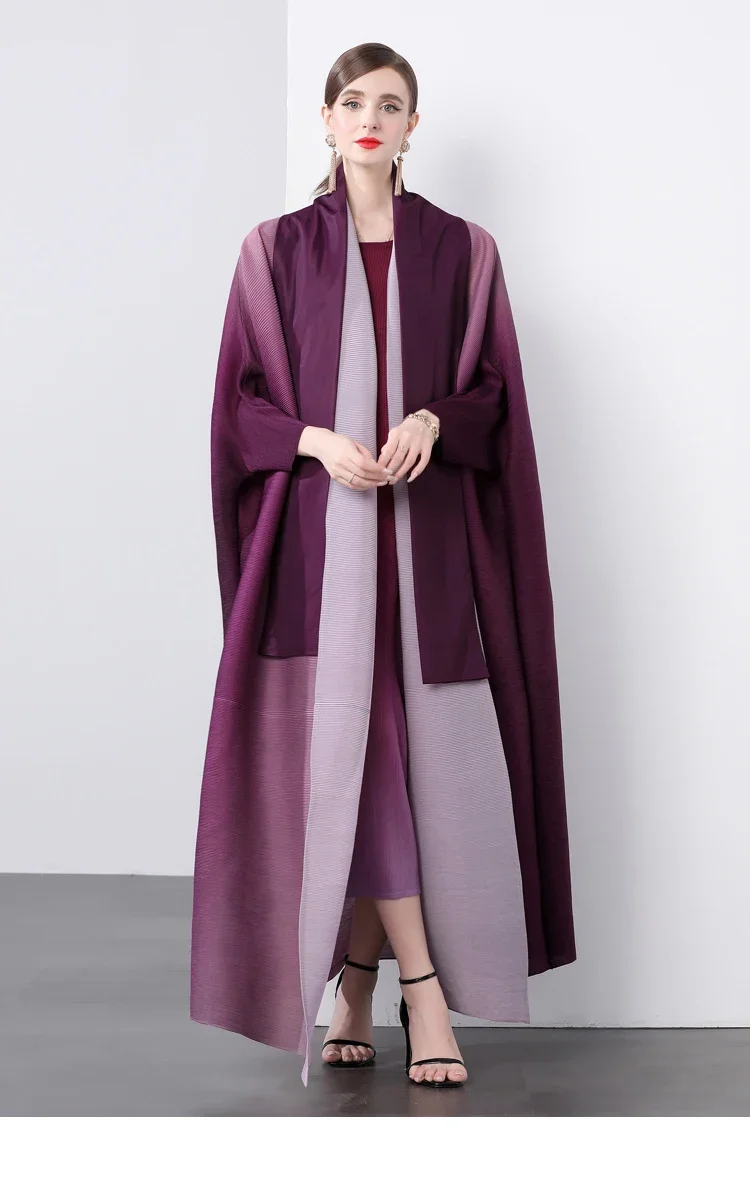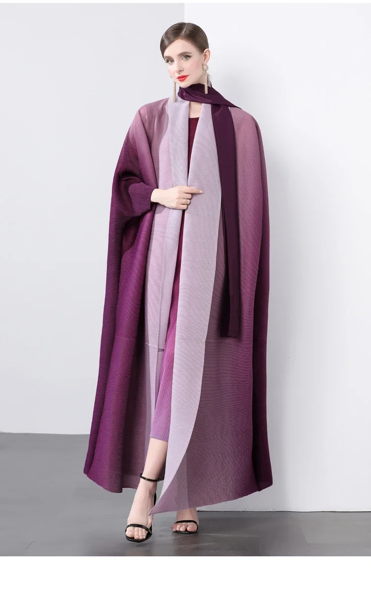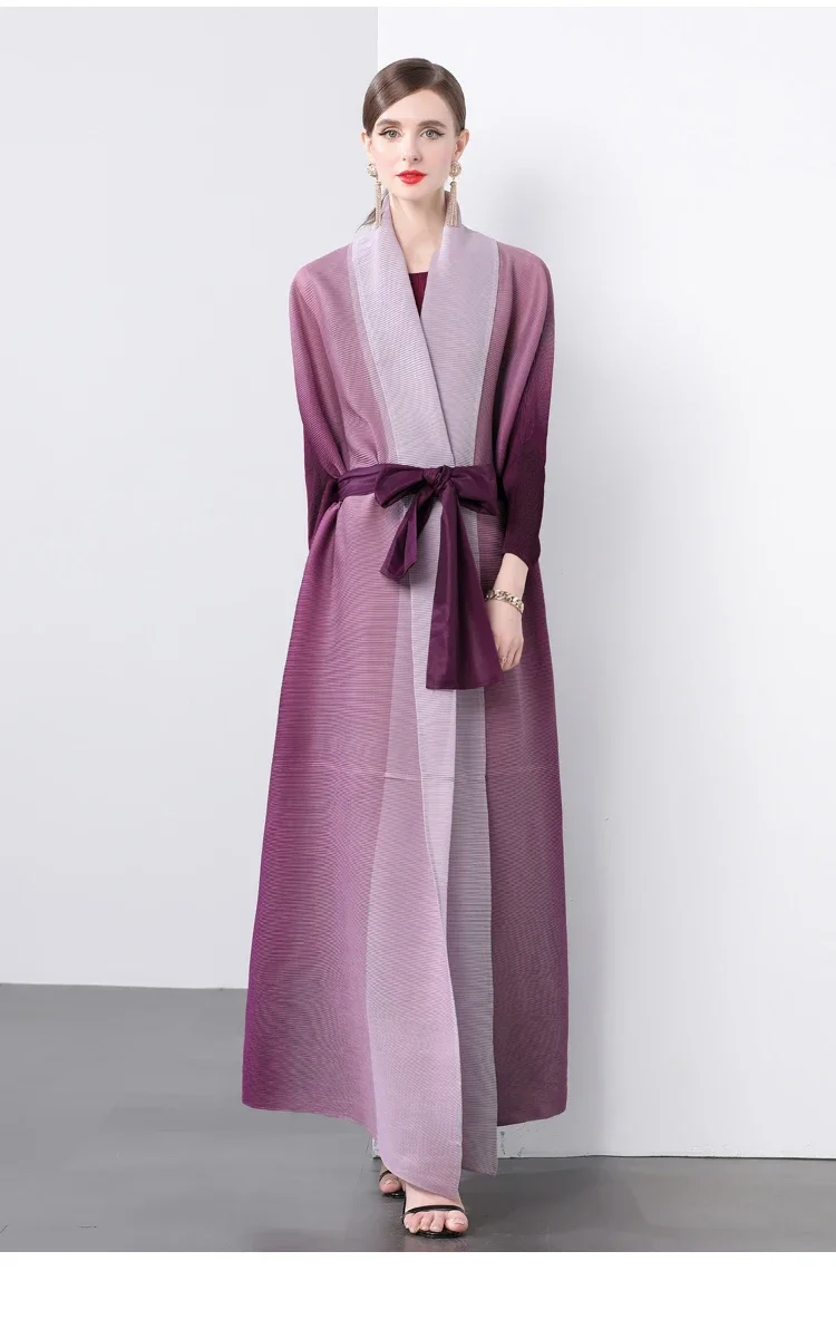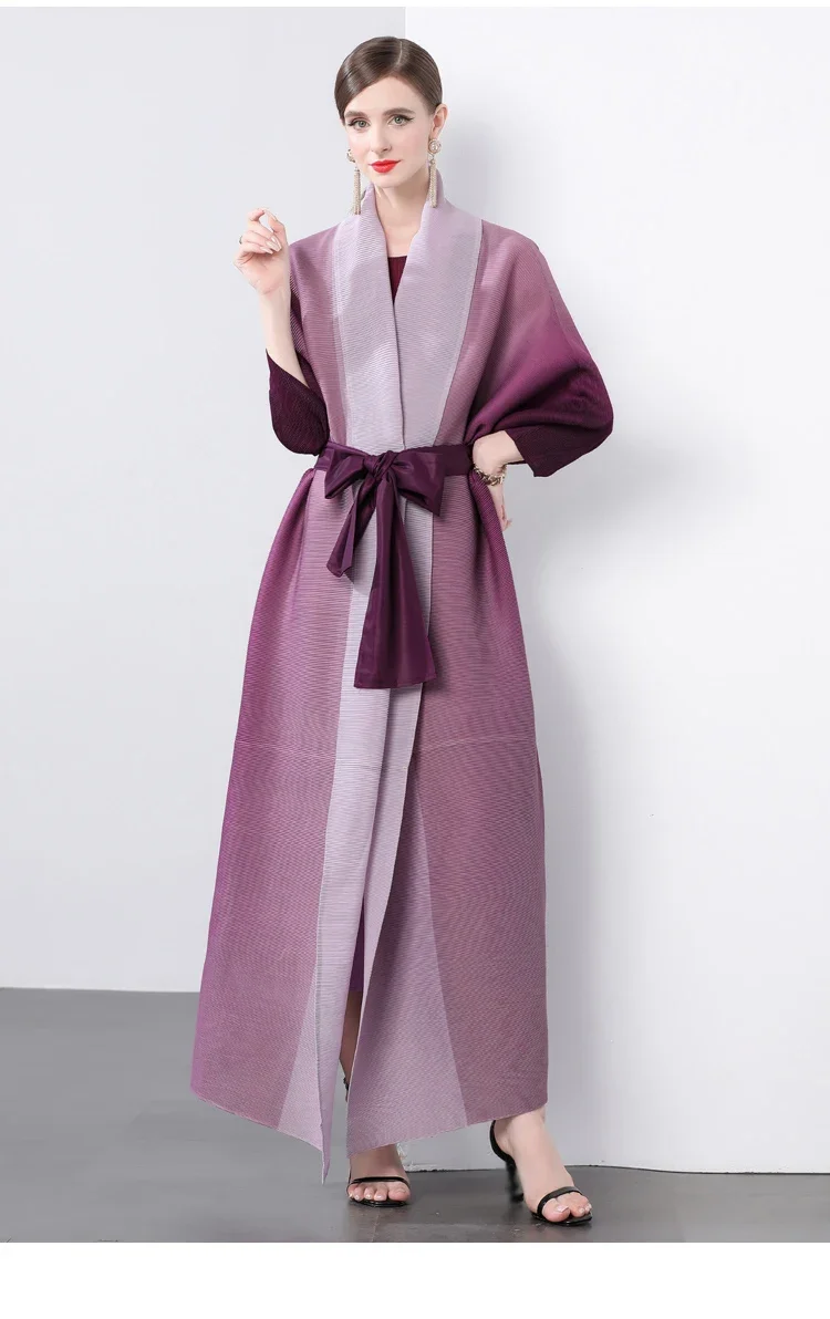Miyake Folds Bandage V-neck Batwing Sleeve Trench Loose Fashion Slimming Temperament Casual Long Coat 2024 Autumn New Robe