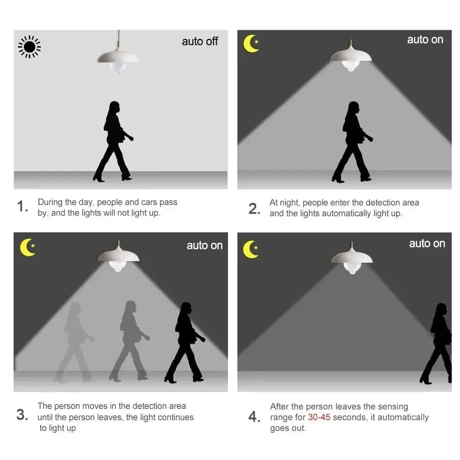 Experience hands-free convenience with our intelligent motion sensor LED bulb. Automatically turns on when motion is detected and off after 30-45 seconds. Perfect for garages, porches, stairs, hallways, and outdoor areas. Dusk to dawn sensor ensures it only works in dark environments.