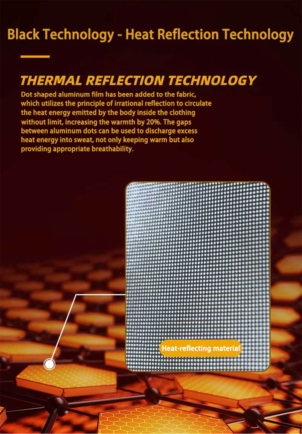 Material: 65% polyester 35% cotton,Nylon/Heat Reflective Point