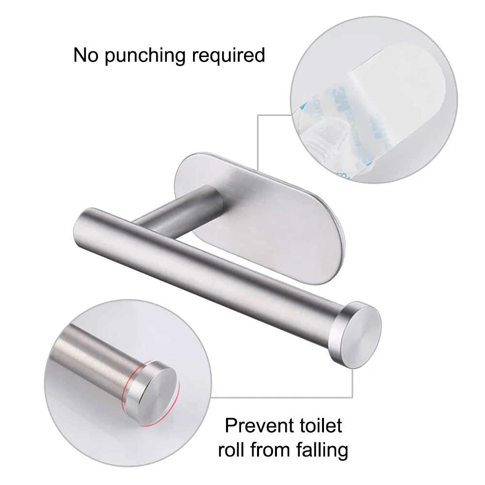 Install your toilet paper holder in seconds without drilling holes! This premium stainless steel wall mount holder features strong self-adhesive backing that sticks firmly to smooth surfaces. Perfect for bathrooms and kitchens, the rustproof SUS304 construction ensures long-lasting durability. Available in 1 or 2 pieces.