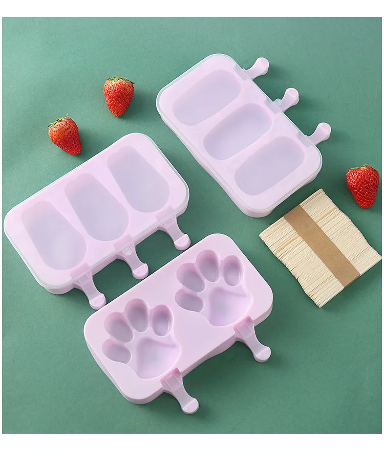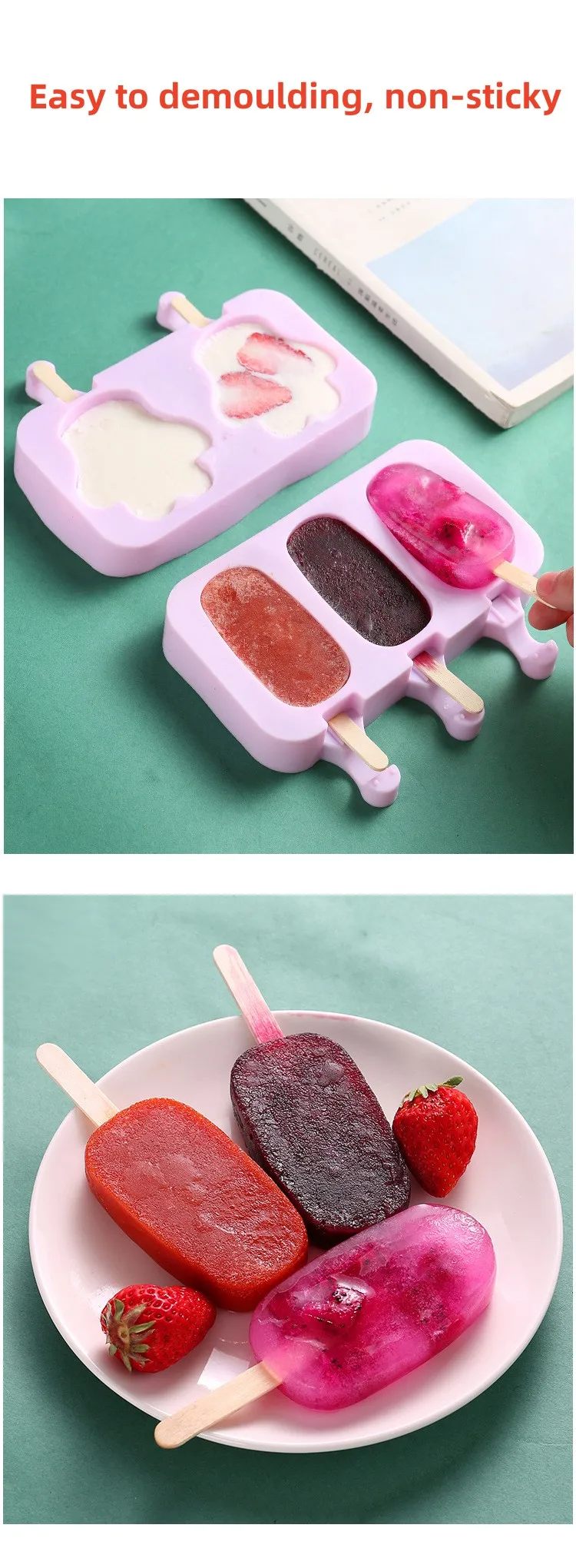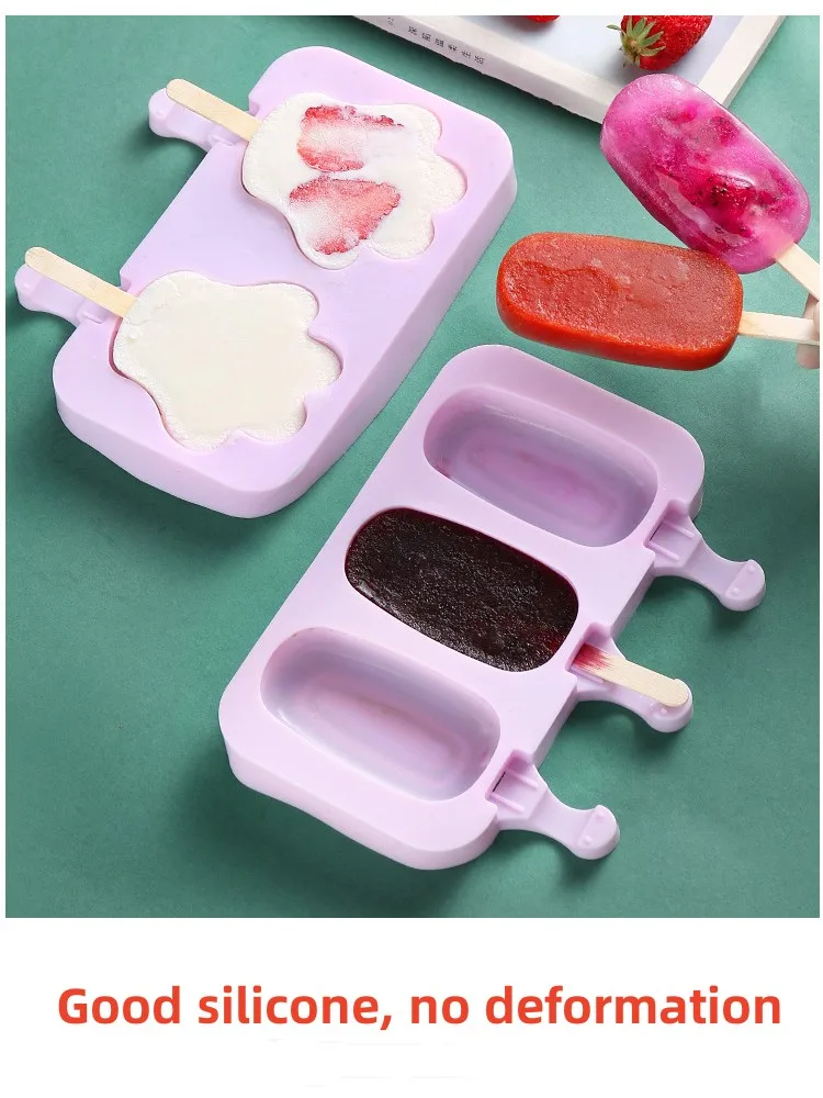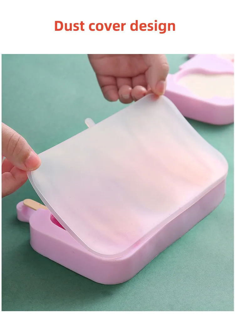 Silicone Ice Cream Mold Popsicle Siamese Molds with Lid DIY Homemade Ice Lolly Mold Cartoon Cute Image Handmade Kitchen Tools