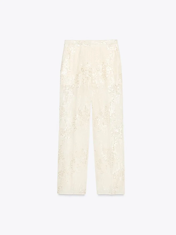 The set features shining sequins, and the pants are crafted from sheer material, adding a charming touch of sensuality in a subtle, alluring way. The overall design is gorgeous and eye - catching, effortlessly making you the center of attention in any occasion and showcasing your unique fashion taste.