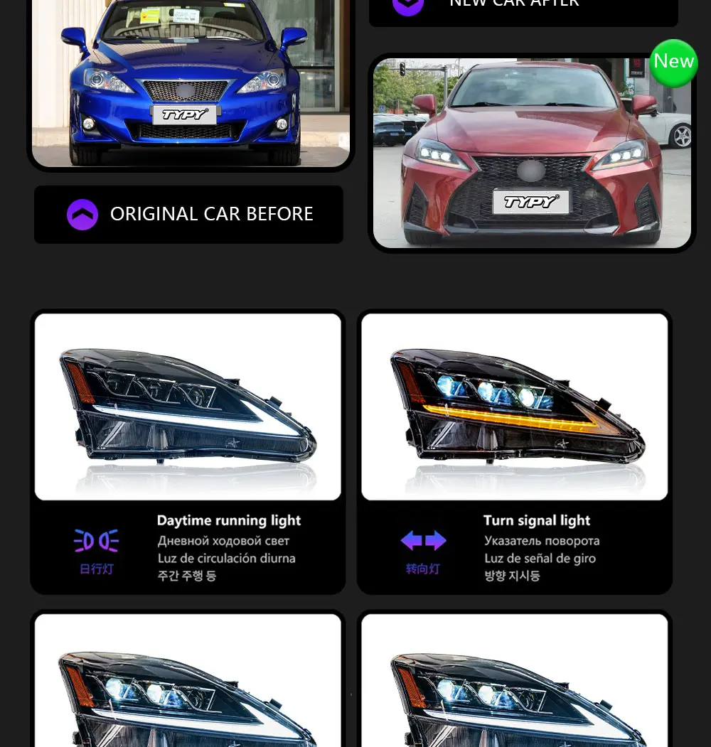 TYPY Car lights For Lexus IS250 IS350 Headlight 2006-2012 LED Projetor head Lamp Daytime Running Light Automotive Accessories