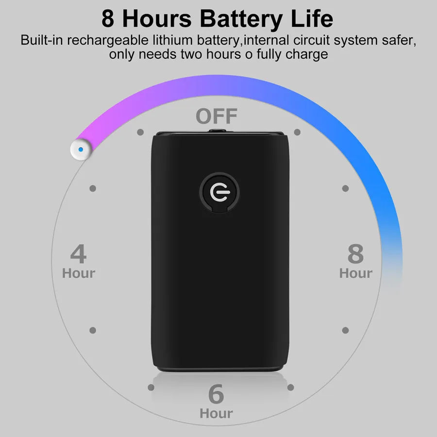 - Rechargeable Battery: 300mAh battery provides up to 5 hours of continuous use